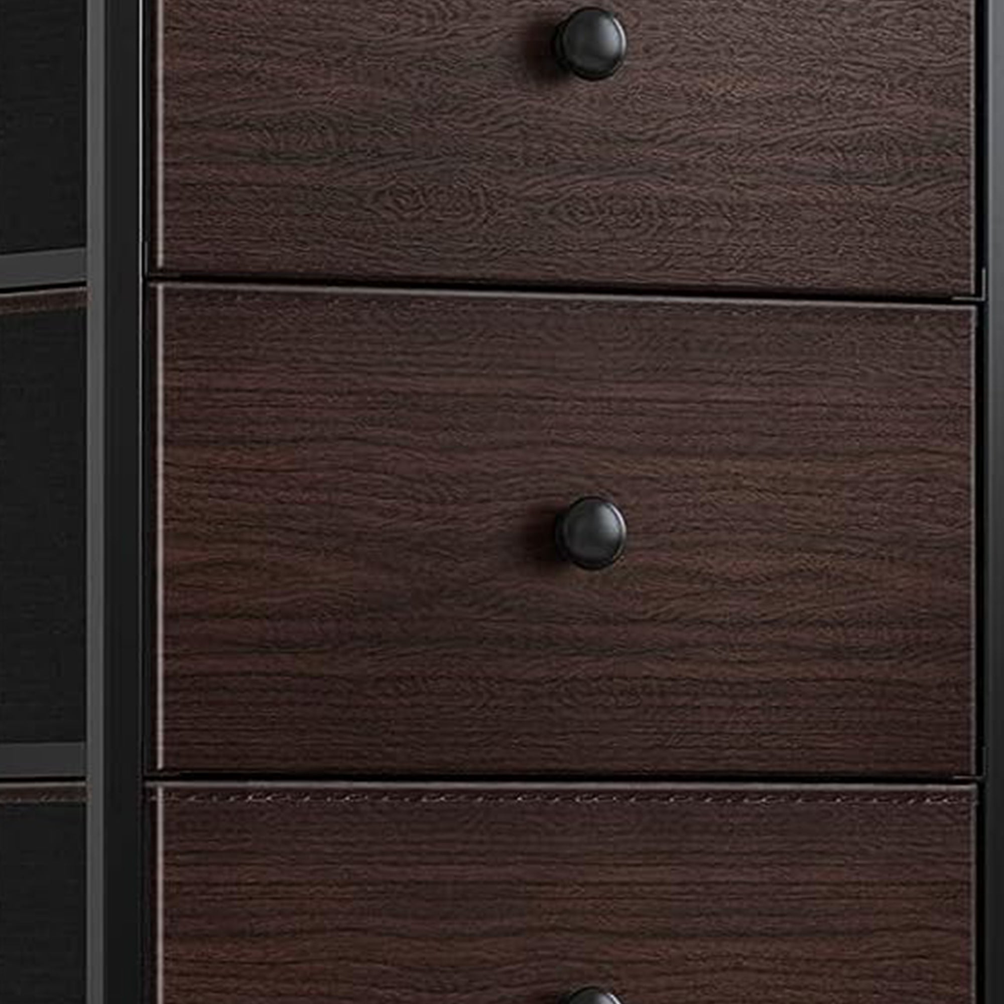 Elevate the sophistication of your space with a modern piece that is sure to impress with the Vertical Narrow Metal Tower Dresser with 5 Fabric Drawer Bins in Rustic Brown from REAHOME.