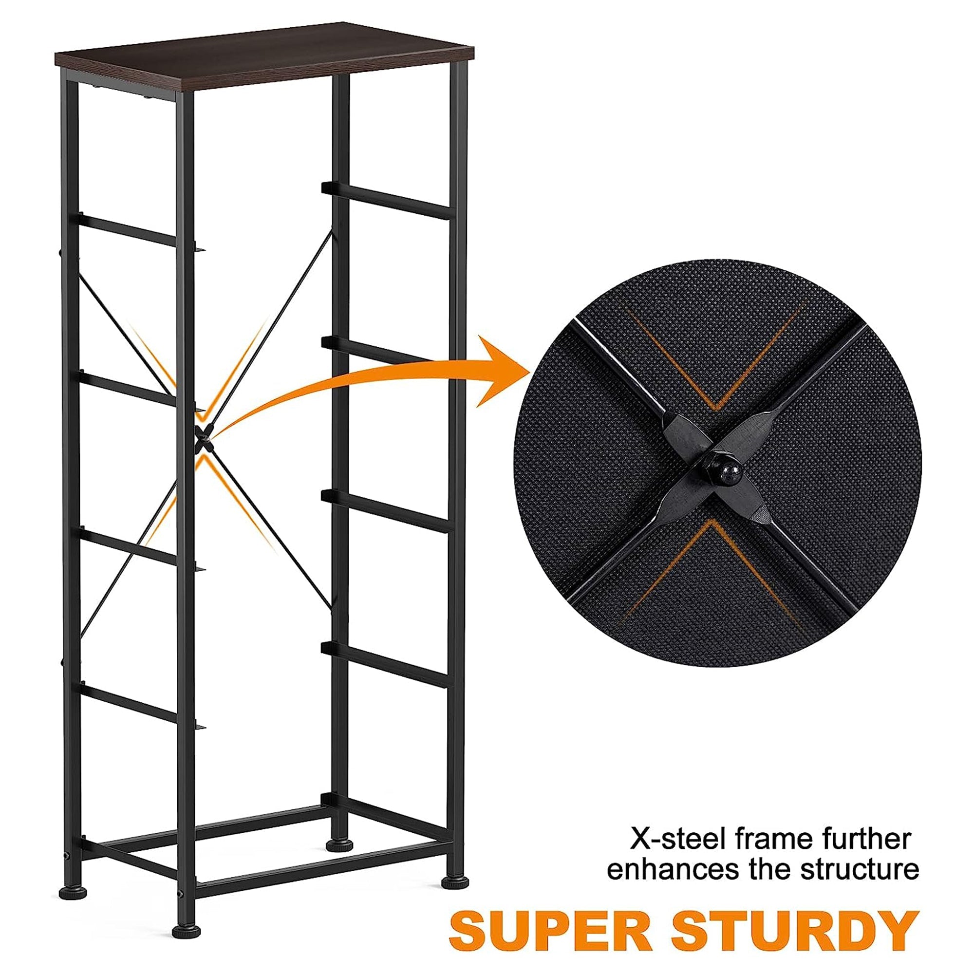 Add more stylish storage to your home with the REAHOME Vertical Narrow Metal Tower Dresser with 5 Fabric Drawer Bins in Rustic Brown.