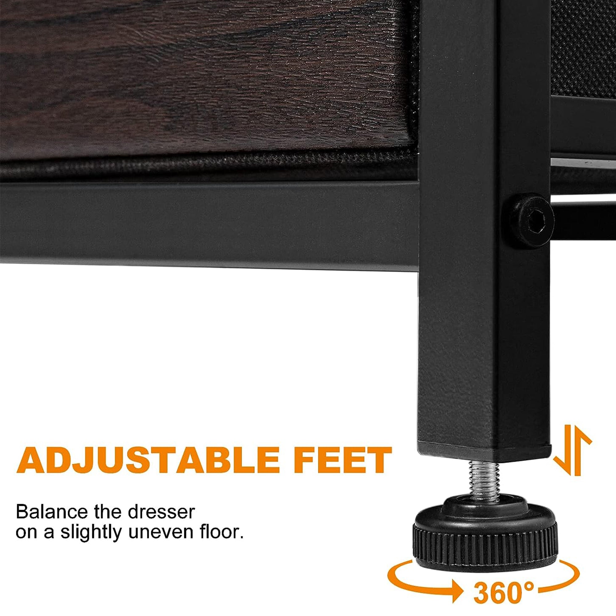 With 5 drawers, this minimalist-designed storage piece provides the room you need to store anything from extra blankets to household items and everything in between. The steel frame, wooden top, and fabric drawers provide a sturdy structure made from durable materials. Adorn the spacious top surface with your favorite decorative items. The adjustable feet and wall attachment add a level of increased safety, especially if you climbing pets or kiddos.