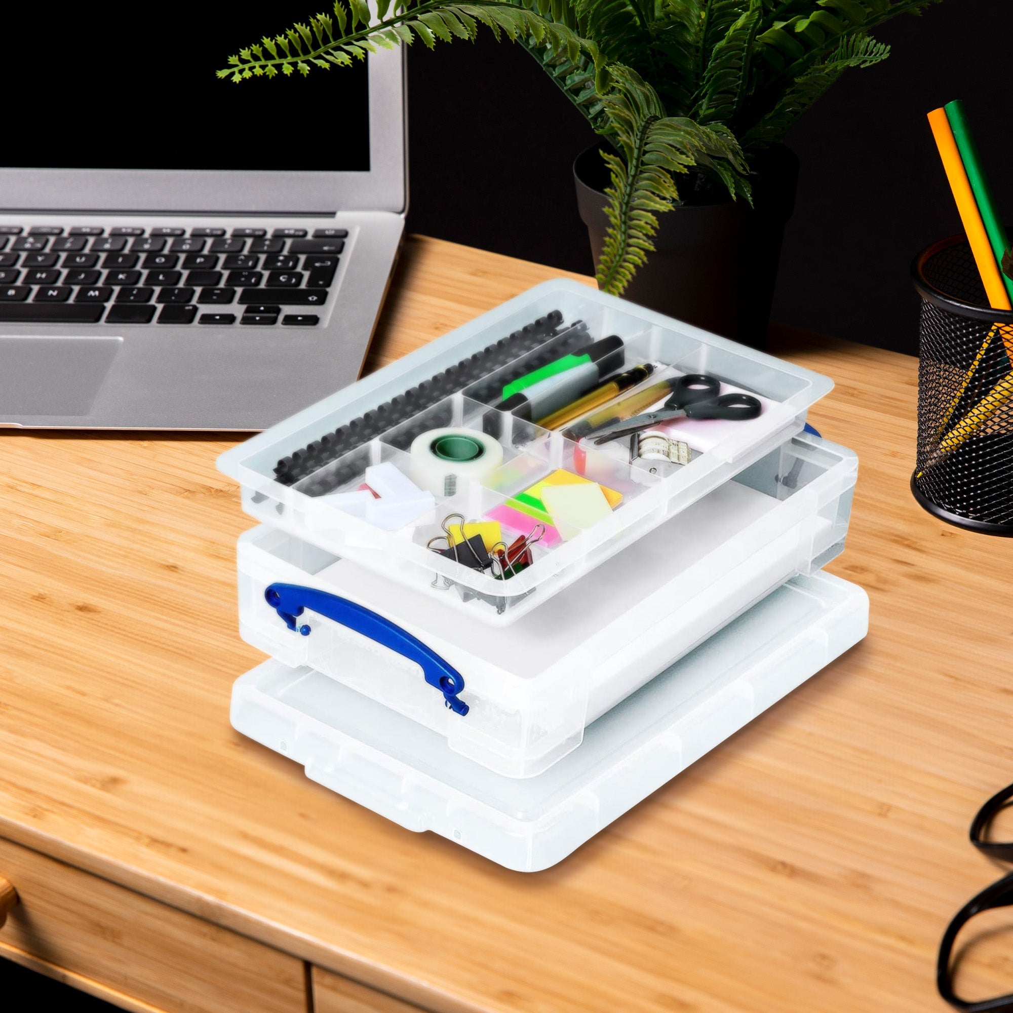 - Crafted from durable plastic, this box is built to withstand the tests of time and countless organizing escapades