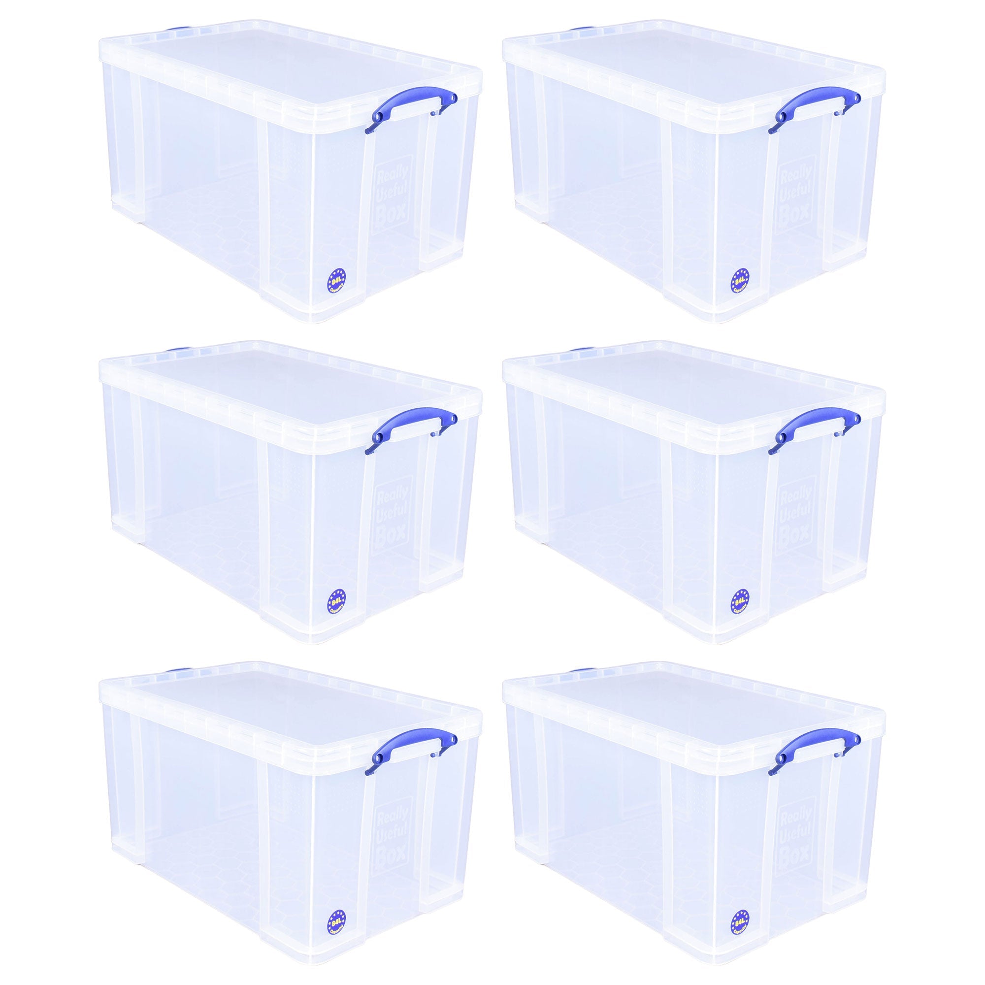 Really Useful Box 84L Storage Bin w/Snap Lid & Clip Lock Handle, 6 Pack, Clear