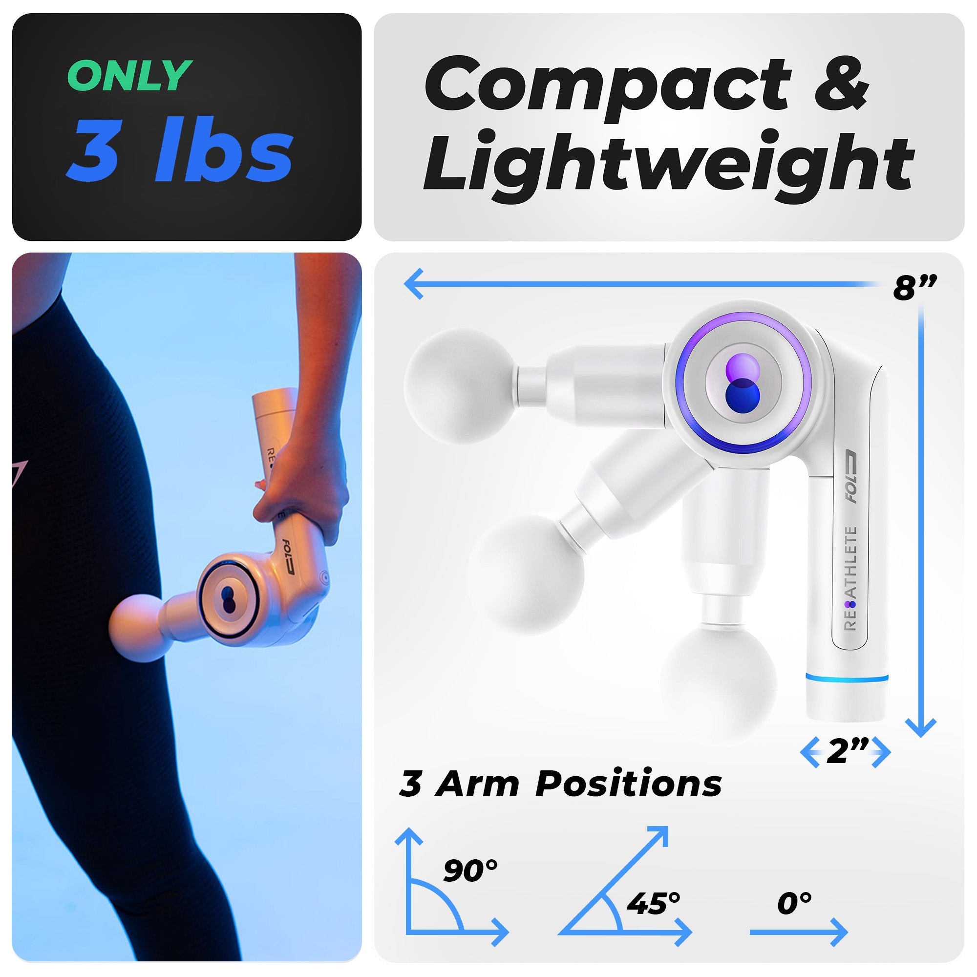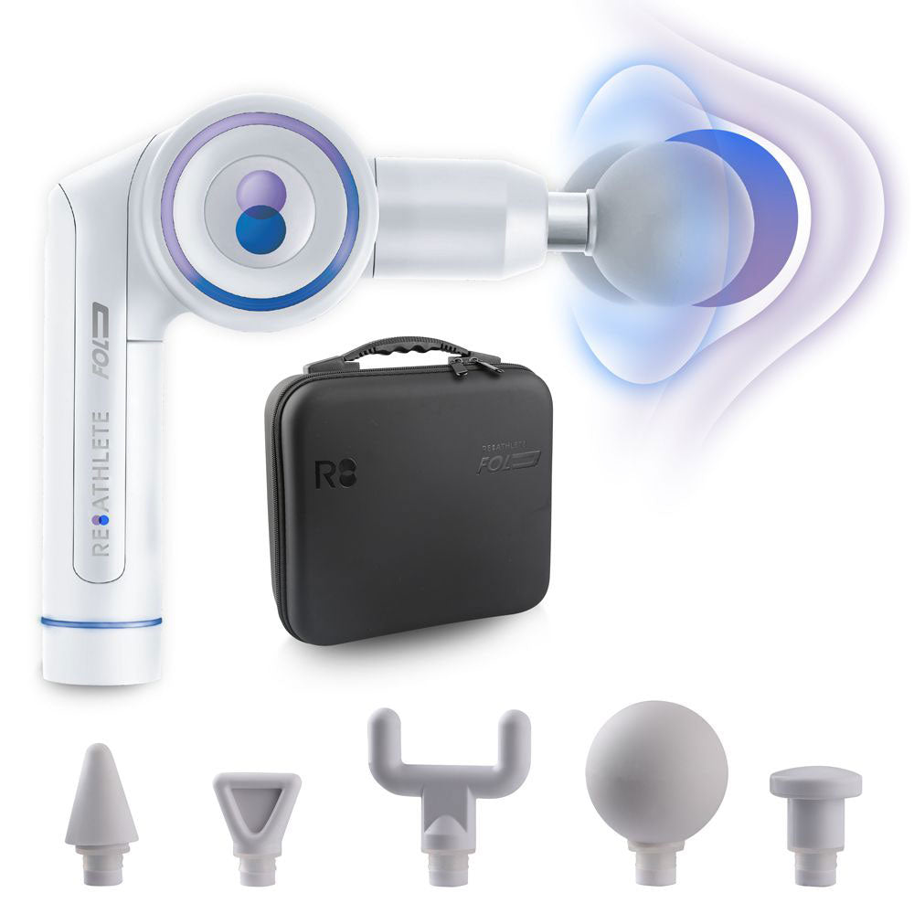 Reathlete FOLD Interchangeable Folding Massage Therapy Gun for Athletes, White