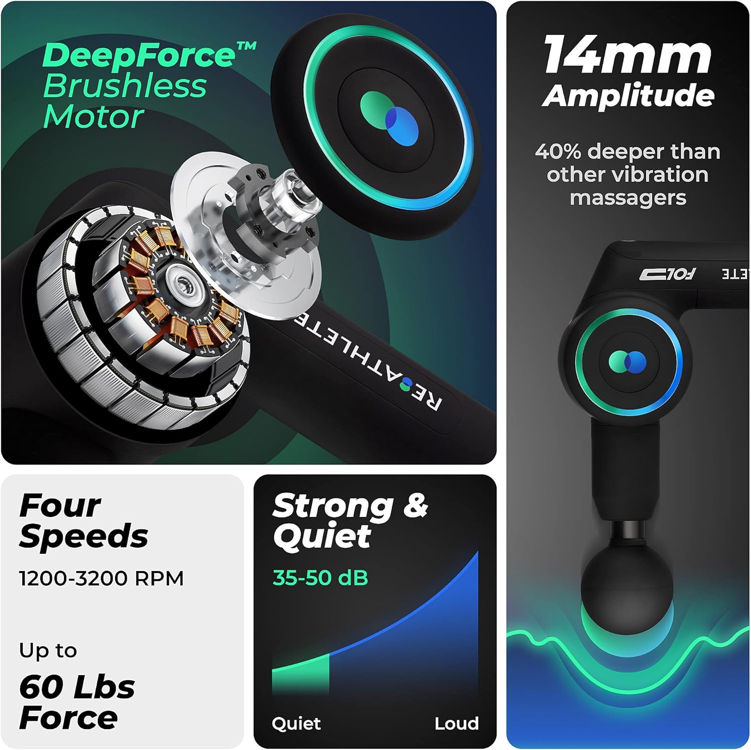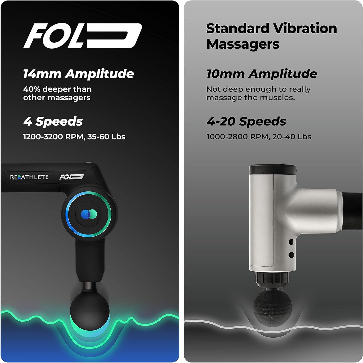 Reathlete FOLD Interchangeable Folding Percussion Massage Therapy Gun, Black