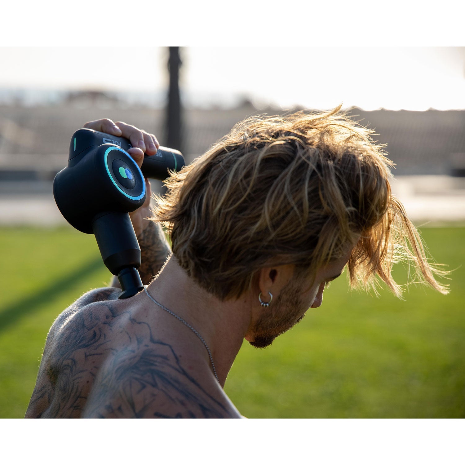 Using the FOLD not only massages your muscles but also increases blood flow, warms up muscles before physical activity, and increases overall range of motion. Discover the ultimate solution to muscle soreness, chronic tightness, and inflammation with the Reathlete percussion massage gun. Don't let body pain slow you down by using the Reathlete FOLD Folding Percussion Massage Therapy Gun. Experience the benefits of a professional massage at your fingertips with the Reathlete deep tissue muscle massage gun.