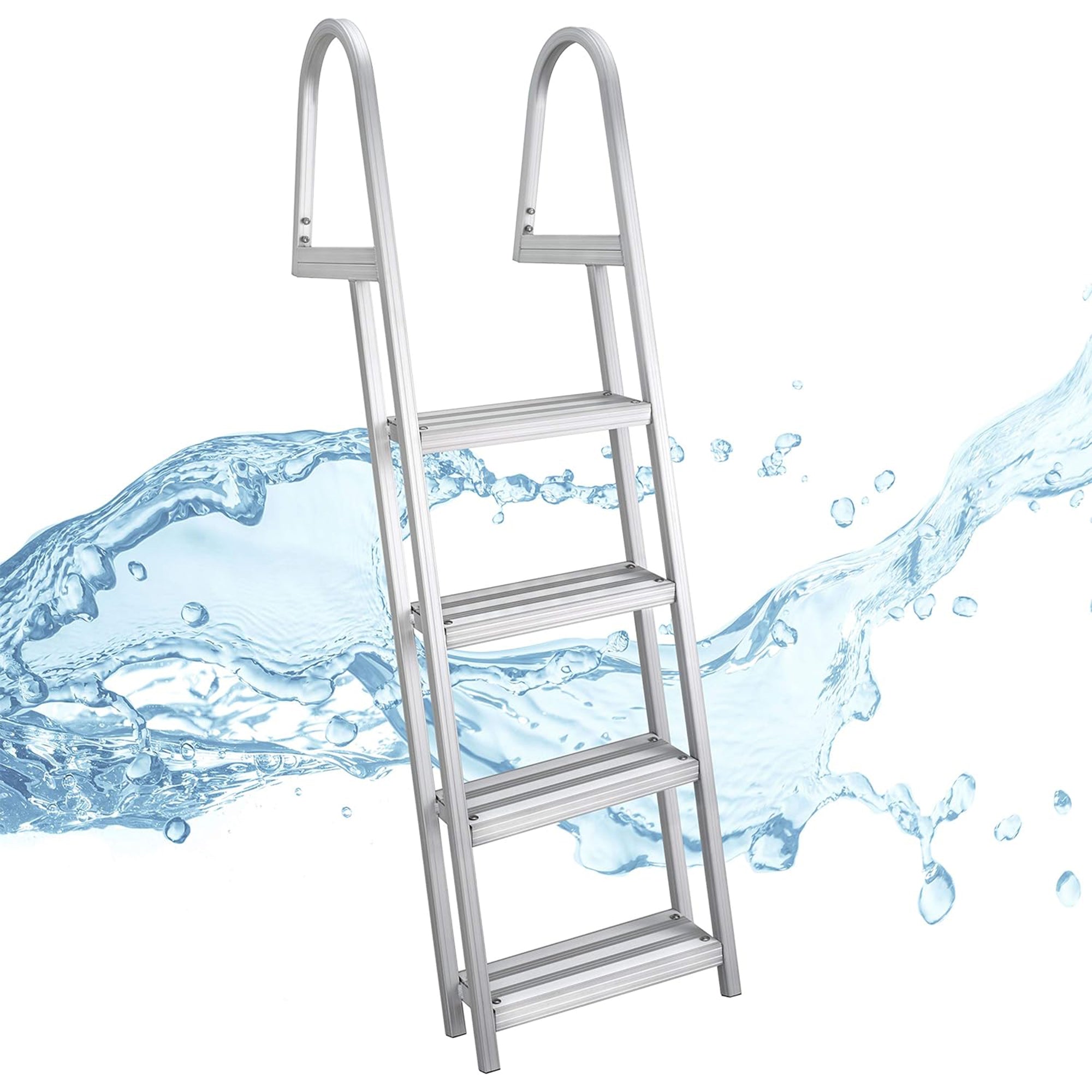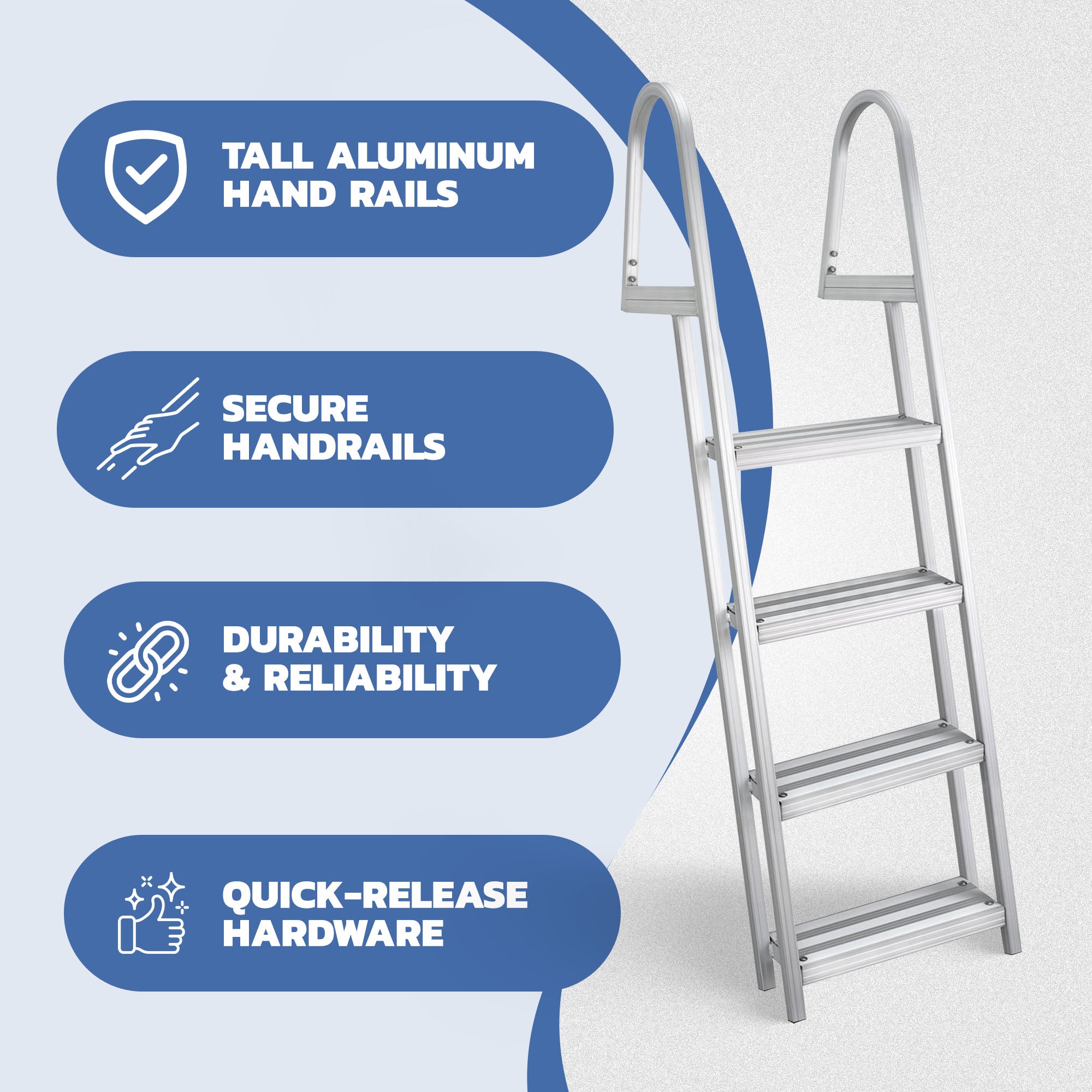 Effortlessly climb up from the water onto your dock or pontoon, smoothly pulling yourself onto the platform with the RecPro 4-Step Angled Aluminum Pontoon Boat Boarding Ladder.