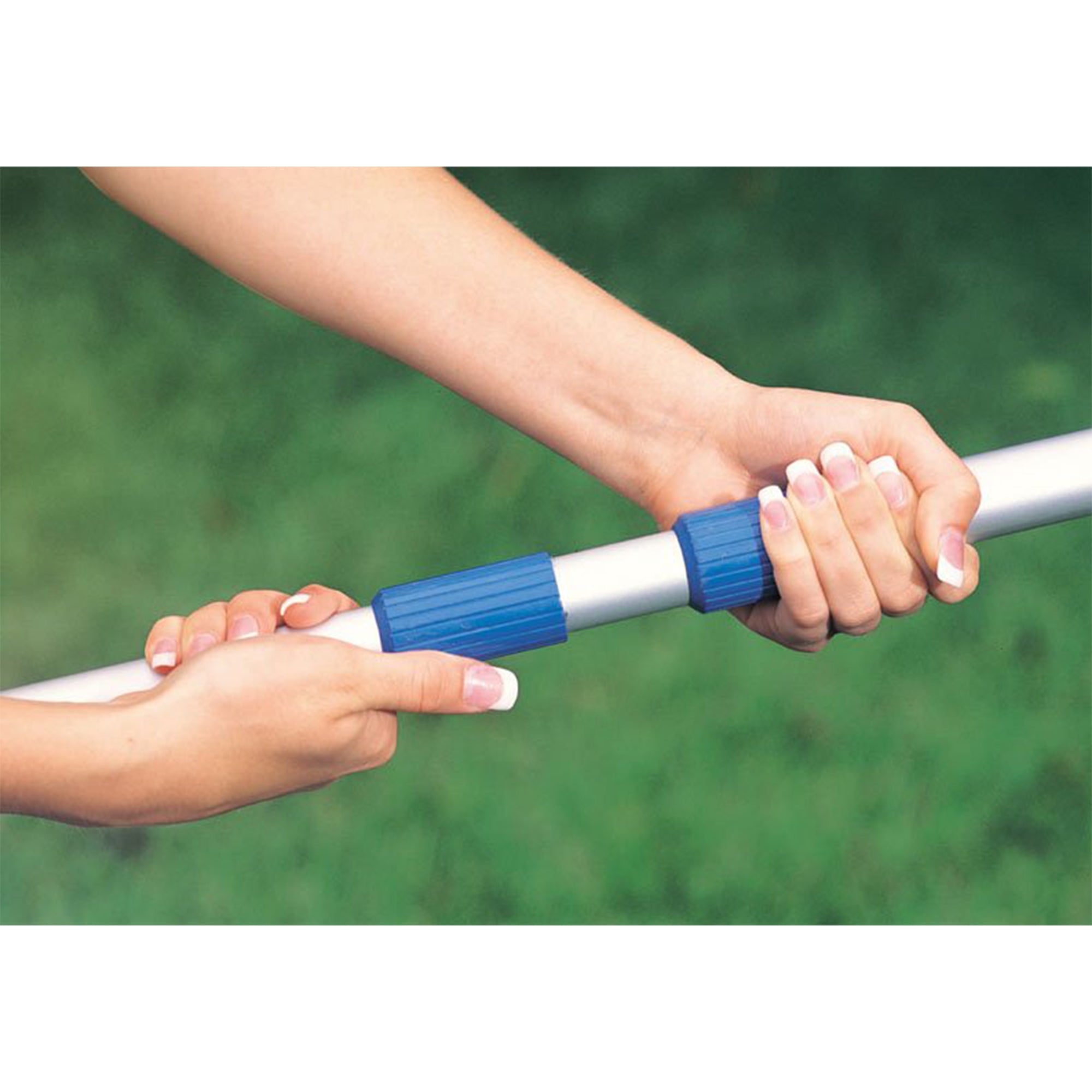- 94-inch telescoping aluminum pole is compatible with both accessories and is great for 16-foot and smaller diameter pools