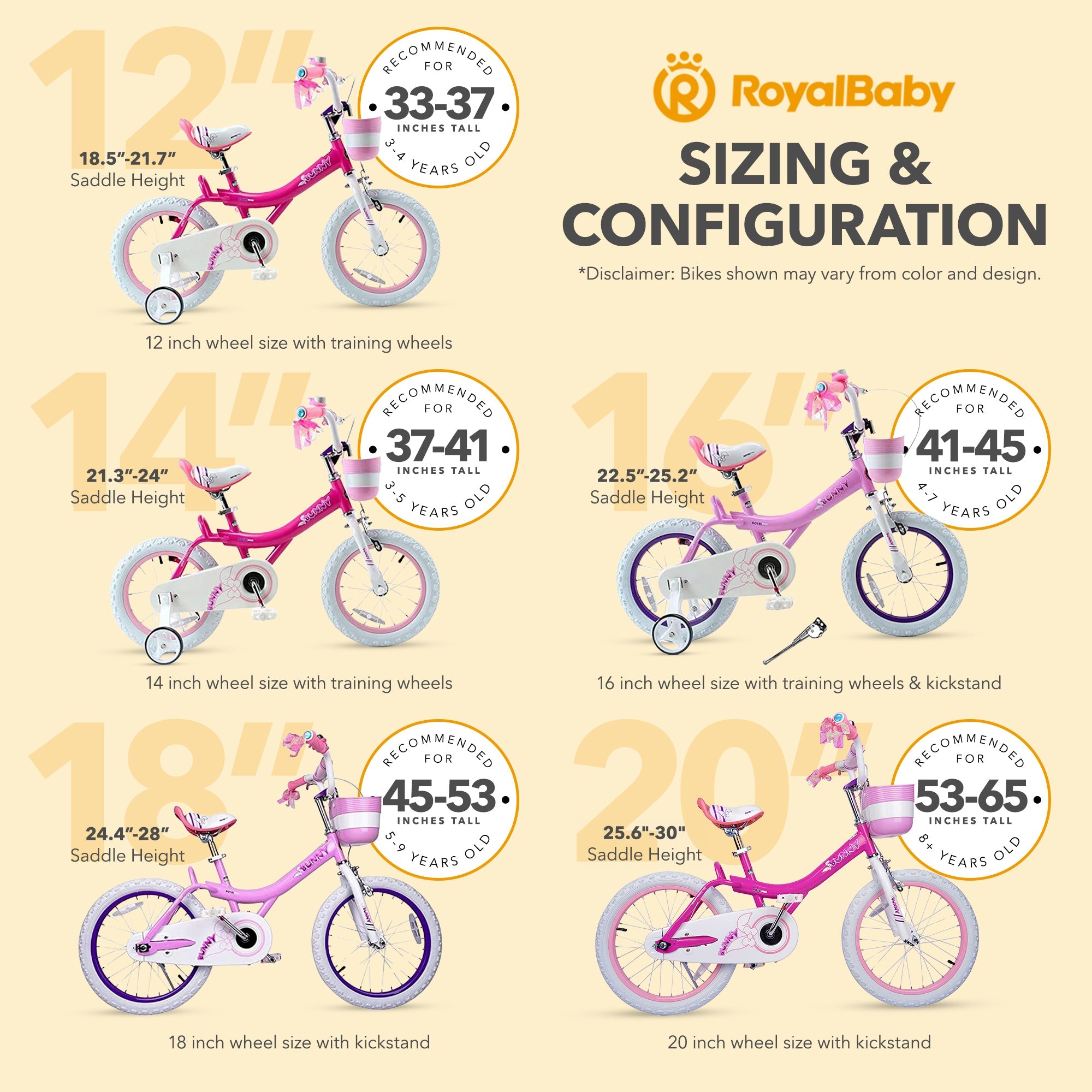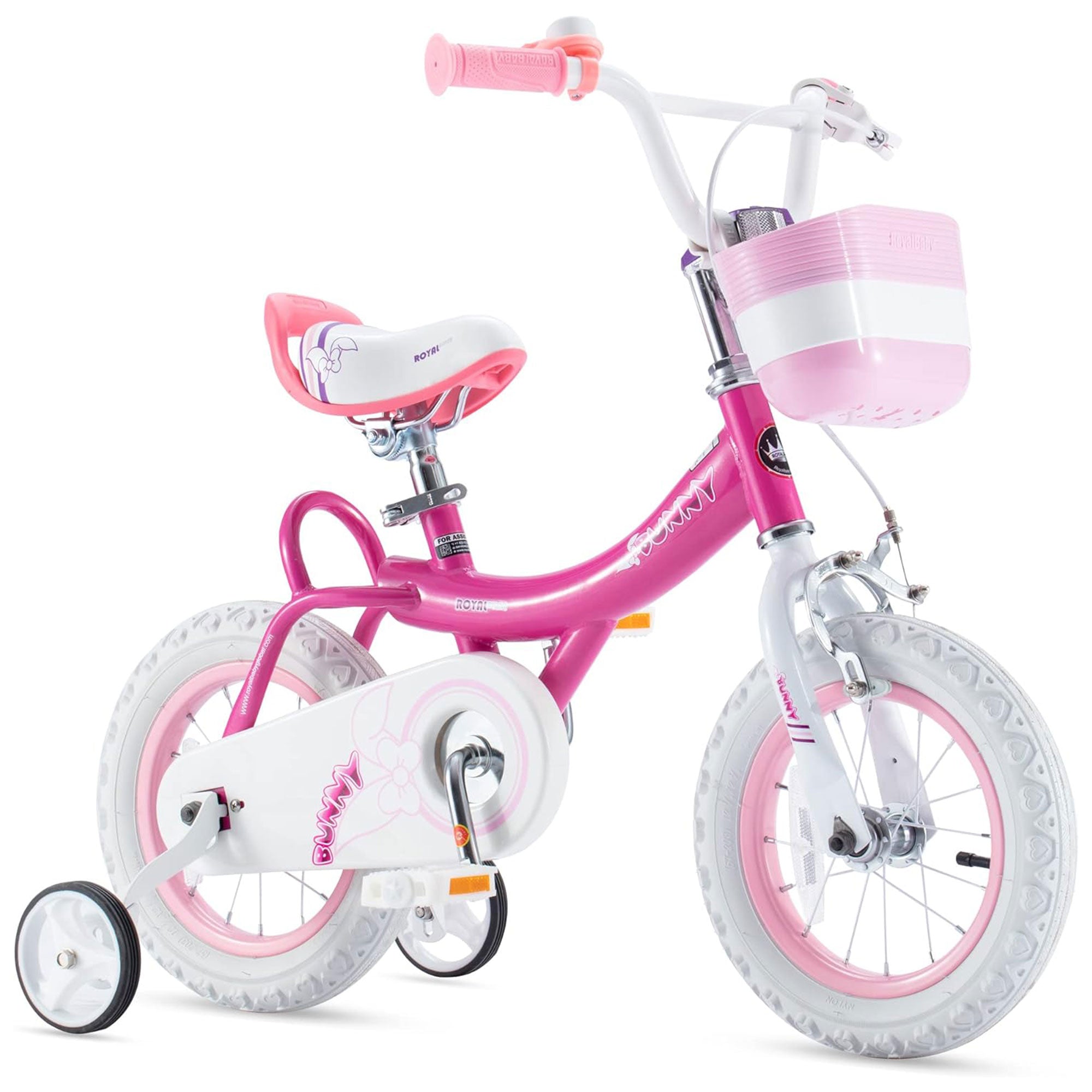 RoyalBaby Princess Girl Bike 16" w/Training Wheels & Kickstand, Bunny/Fuchsia