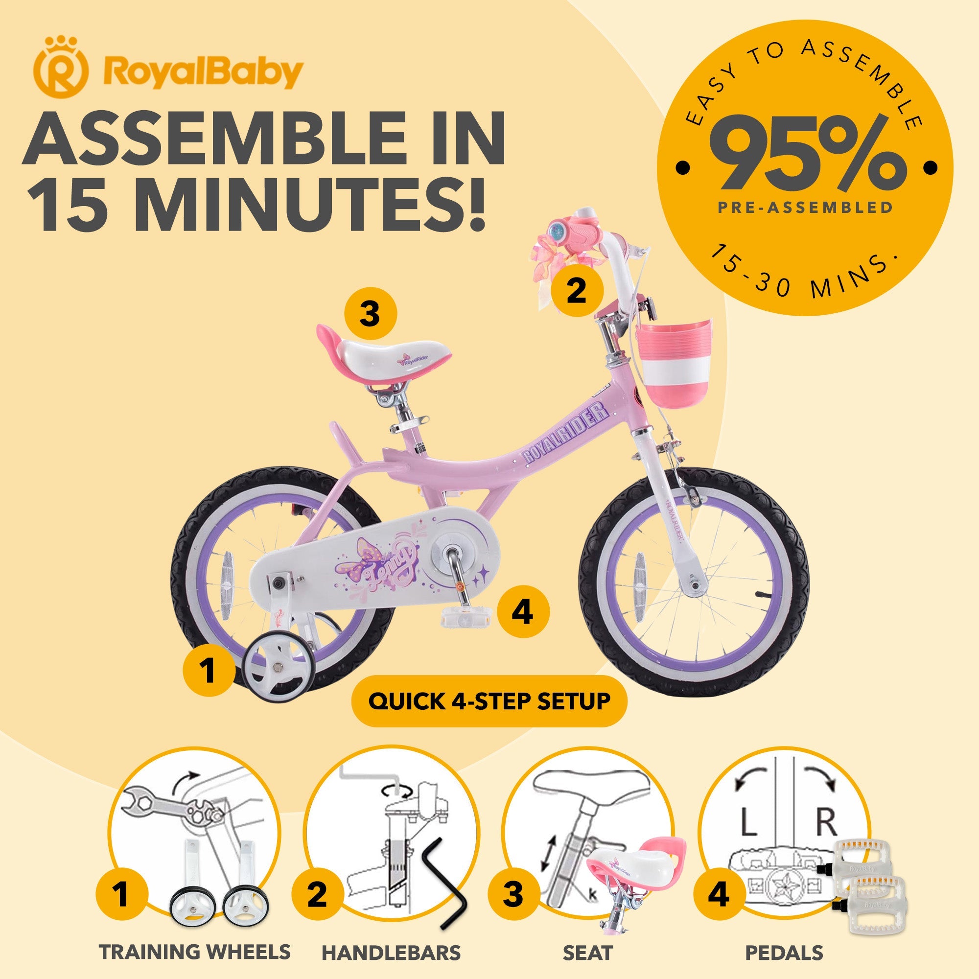 Assembling the bike is a breeze with the included tool kit and easy-to-follow instructions. The durable construction ensures it will withstand the test of time and active play, making it a reliable choice for your child's first bicycle. The RoyalBaby Princess Girl Bicycle is more than just a bike; it's a gateway to adventure, independence, and joy. Watch your child's face light up with excitement and pride as they pedal their way to new adventures.