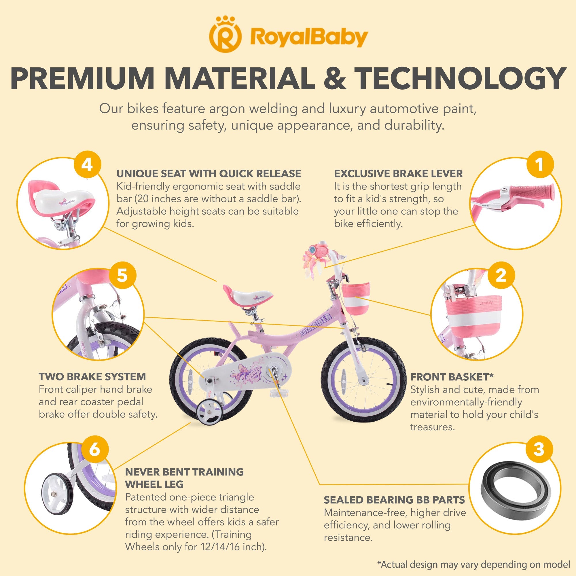 Allow your little one to experience the joy of riding with the RoyalBaby Princess Girl Bicycle, the perfect companion for young adventures. This beautifully designed bike is sure to catch everyone's eye and make your little one feel like royalty on wheels.