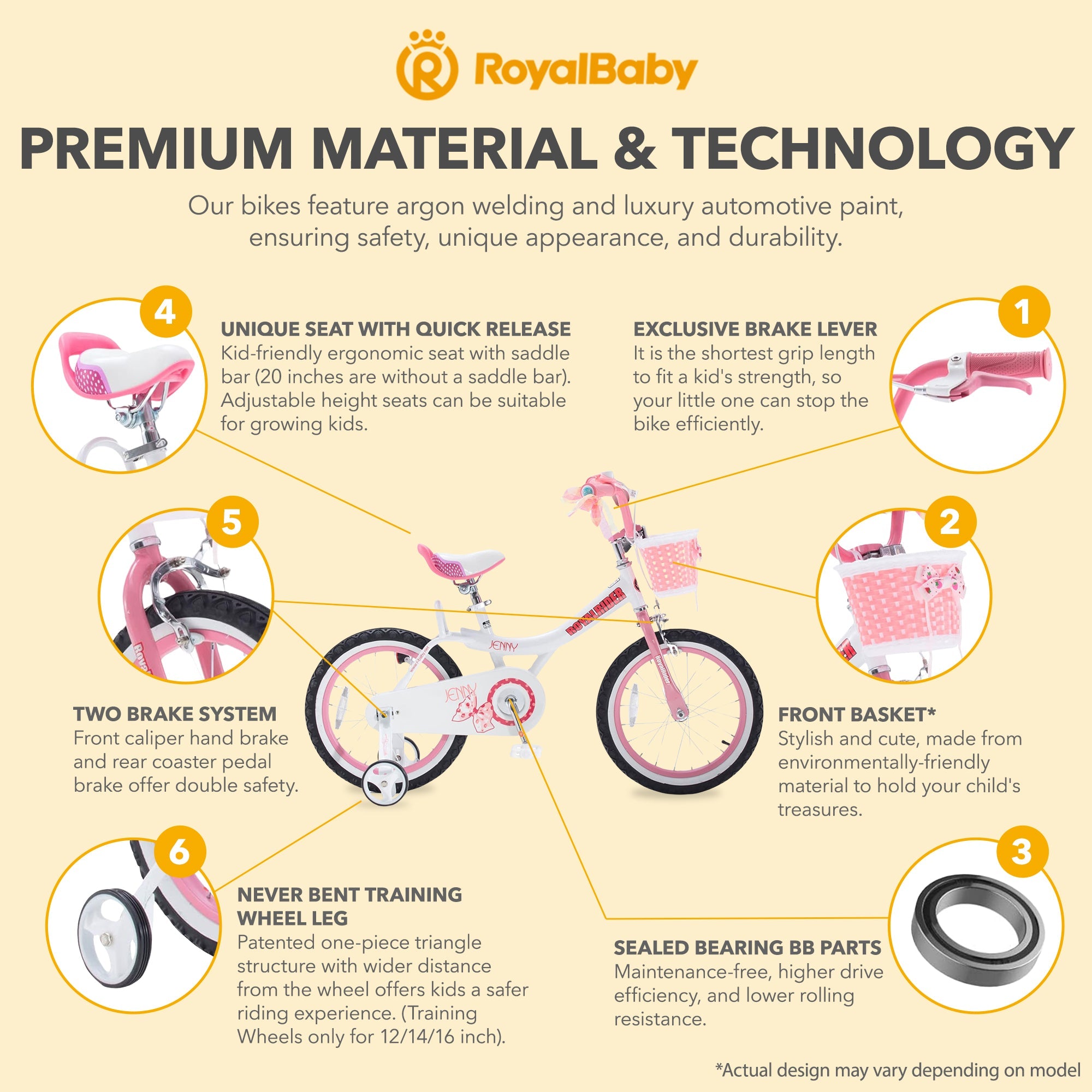 RoyalBaby Princess Girl Kids Bicycle 14" with Training Wheels, Jenny/White Pink