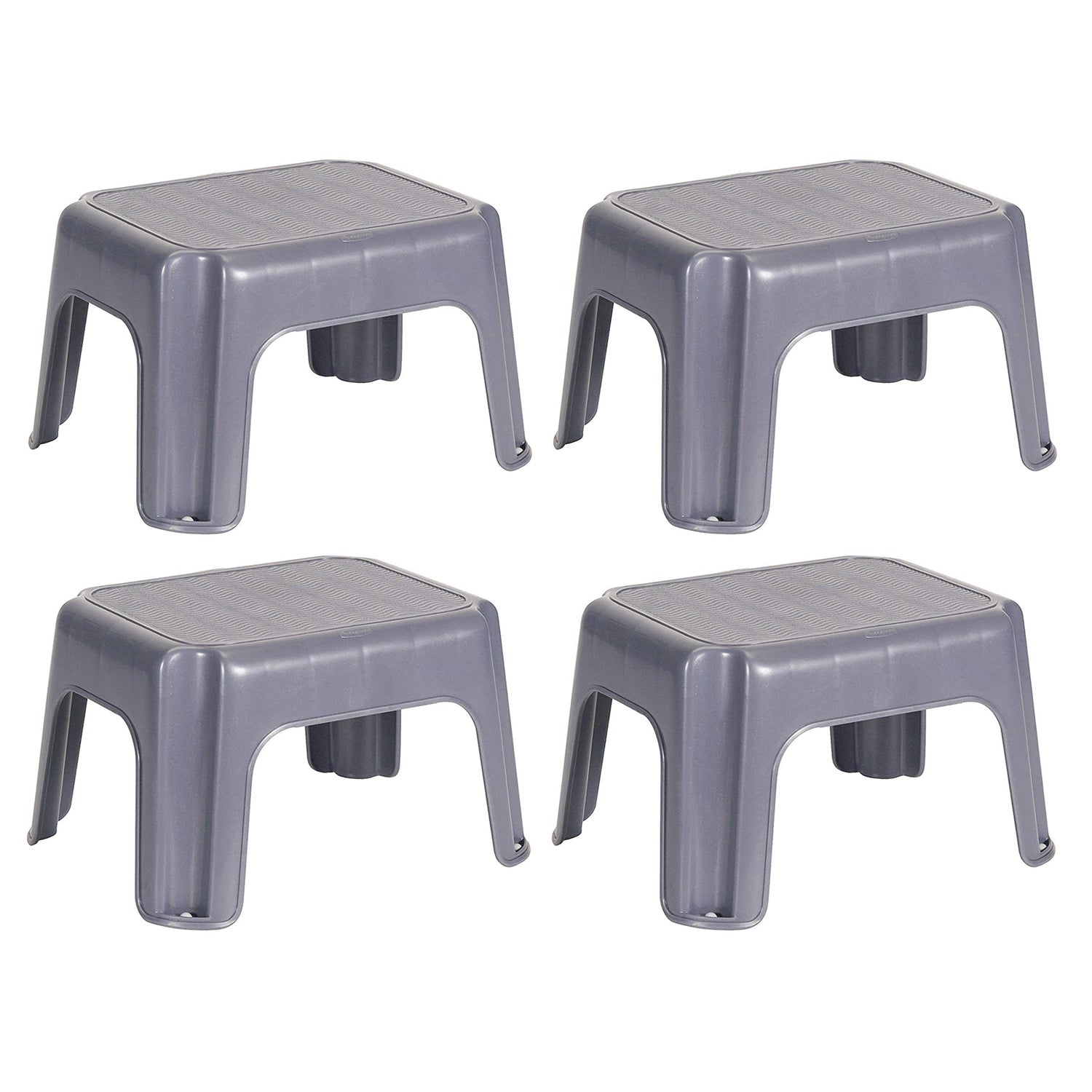 These single-step stools are durable plastic and feature a 250-pound weight capacity. Safety takes center stage with the stool's surface design and feet that resist skids, preventing slips even on smooth surfaces and ensuring the stools have a solid grip. Both the top and bottom combine to provide an excellent grip to help keep you safe when elevated off the ground. The stools are portable, too, making it an ideal option to move from the kitchen to the basement and anywhere else around your home. Measuring a compact 10 by 12.5 by 7 inches, it effortlessly fits into your space without creating clutter. The portability factor is a bonus, allowing you to move it wherever you need that extra lift.