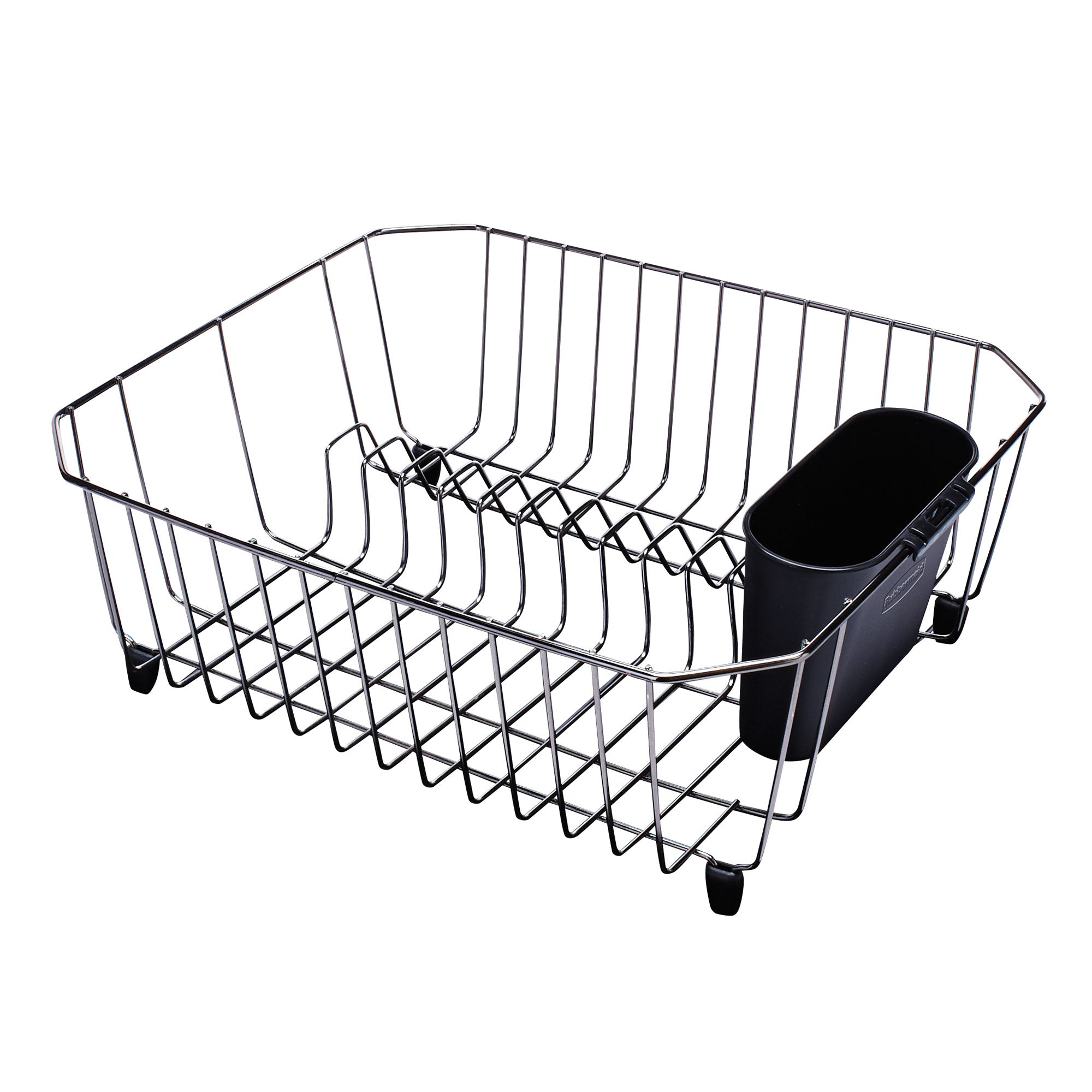Rubbermaid Home Kitchen Gadget Twin Sink 11 Slot Dish Rack Drainer, Black Chrome