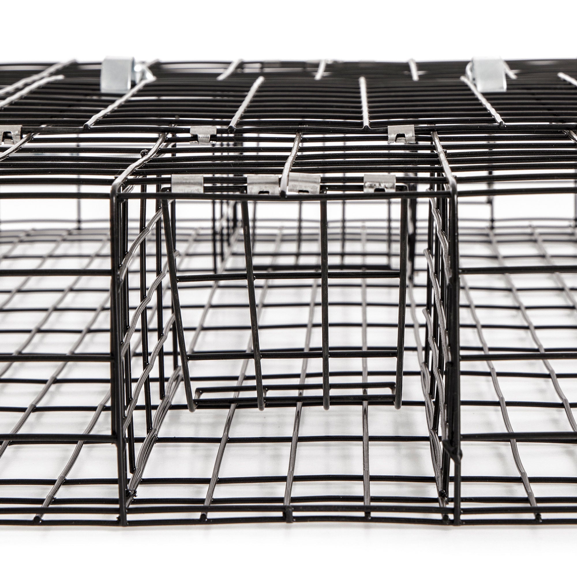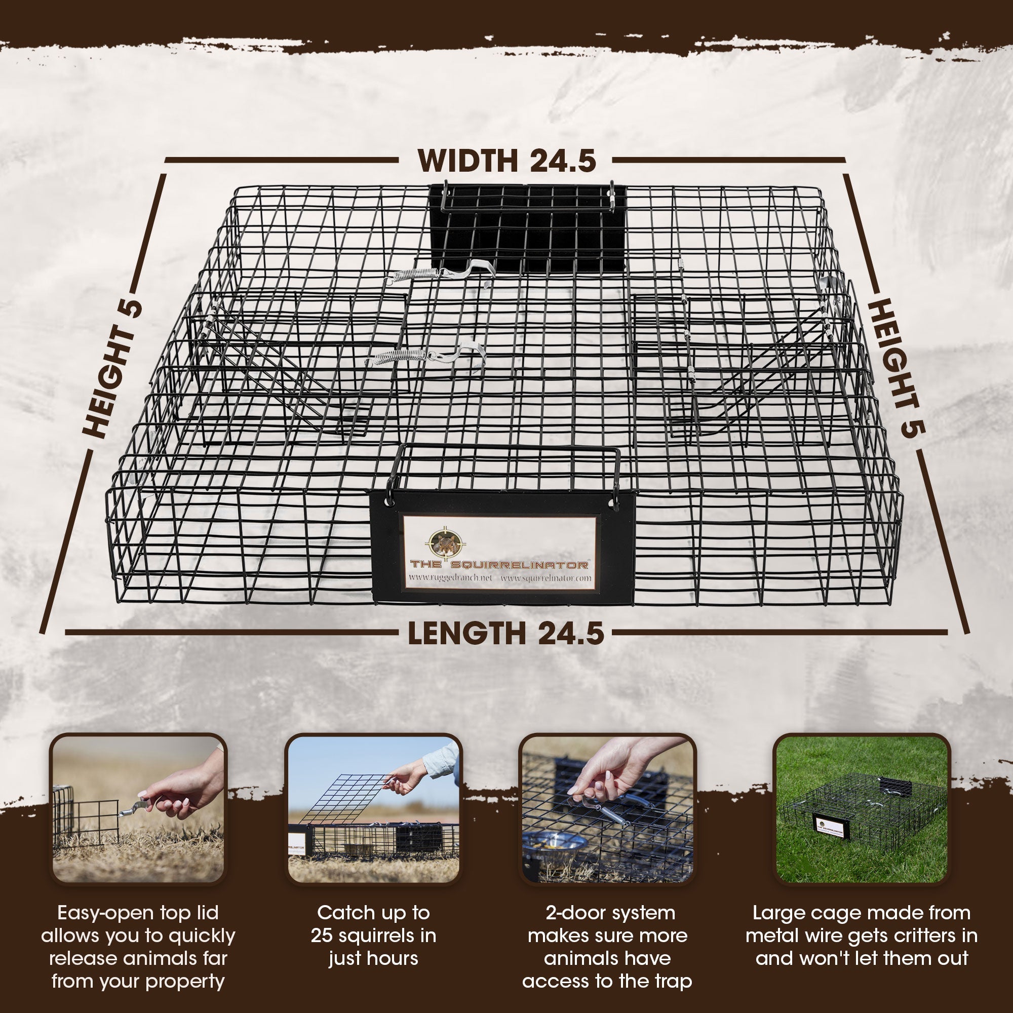 Don't worry: this humane wildlife trap keeps squirrels, chipmunks, and other small mammals confined and safe without harming them once they're trapped within its metal wire walls. 2 doors provide better access to your bait and you can entice up to 24 creatures in just a few hours with the right placement and incentive.