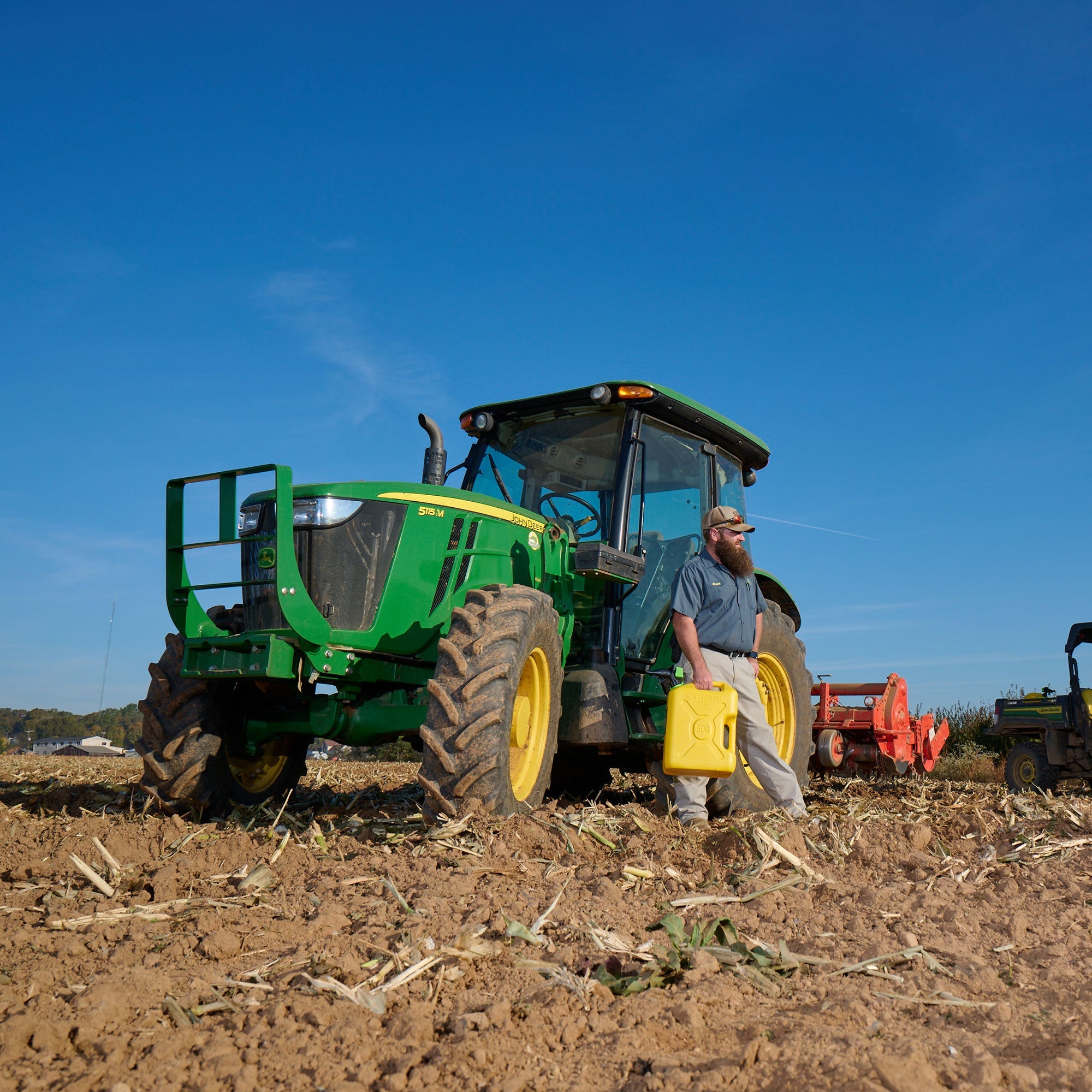 Built with an easy-to-pour design, these gas cans are just what you need for convenience when you're always on the go. Whether mowing an acreage, doing chores at the farm, or gearing up for ATV adventures, these diesel fuel containers ensure you can refill your vehicles quickly and efficiently with the controllable flow and ample 5-gallon capacity. The rugged plastic construction stands up to continuous use season after season and the squeeze-controllable flow ensures fast fills without spills. A top and back handle make this plastic jug easy to lift and carry and allow you to fuel up your machines seamlessly. These fuel jugs will be your much-needed companion when you want to keep your momentum without having to stop for a long or cumbersome refueling process.
