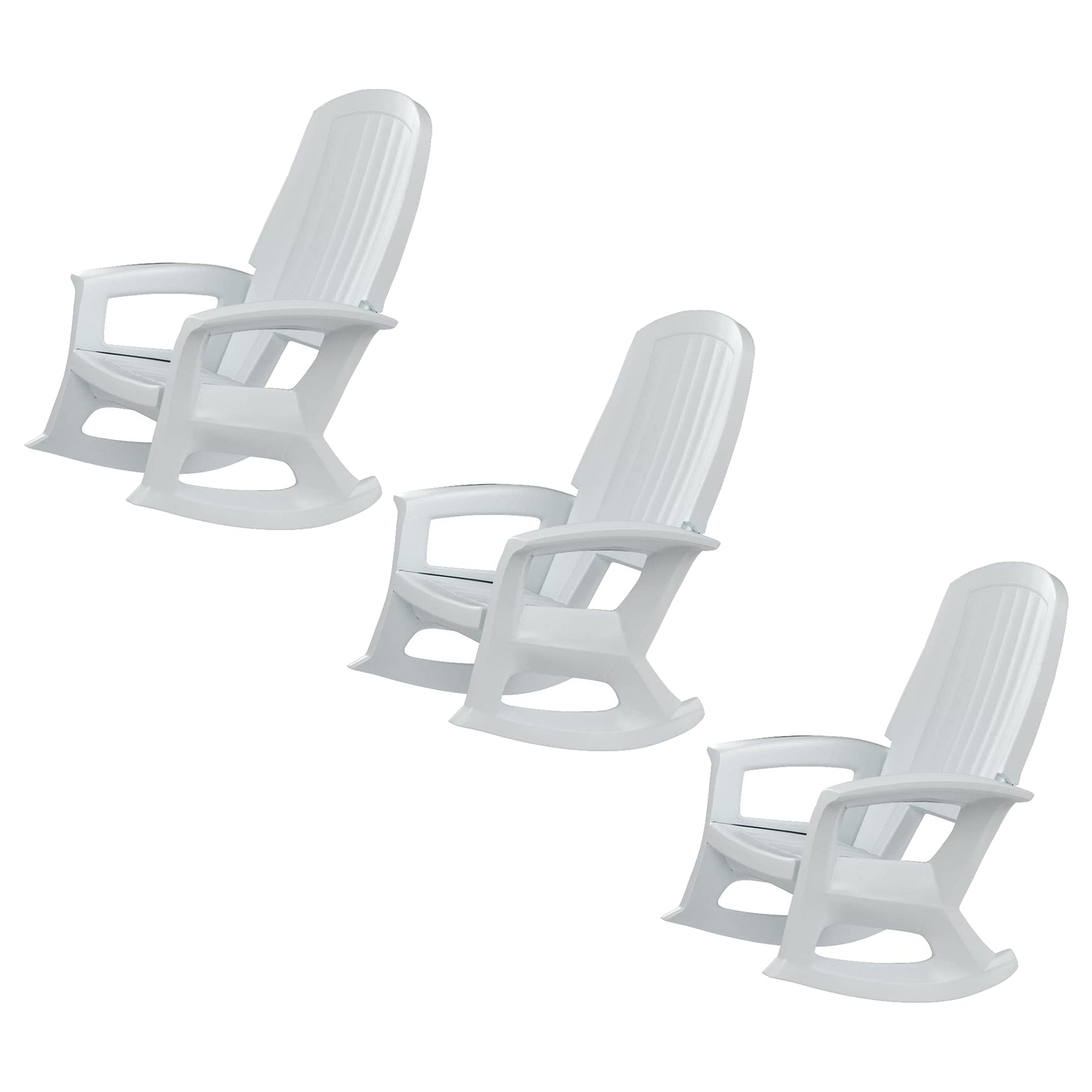 Semco Rockaway Heavy Duty All Weather Outdoor Rocking Chair, White (3 Pack)