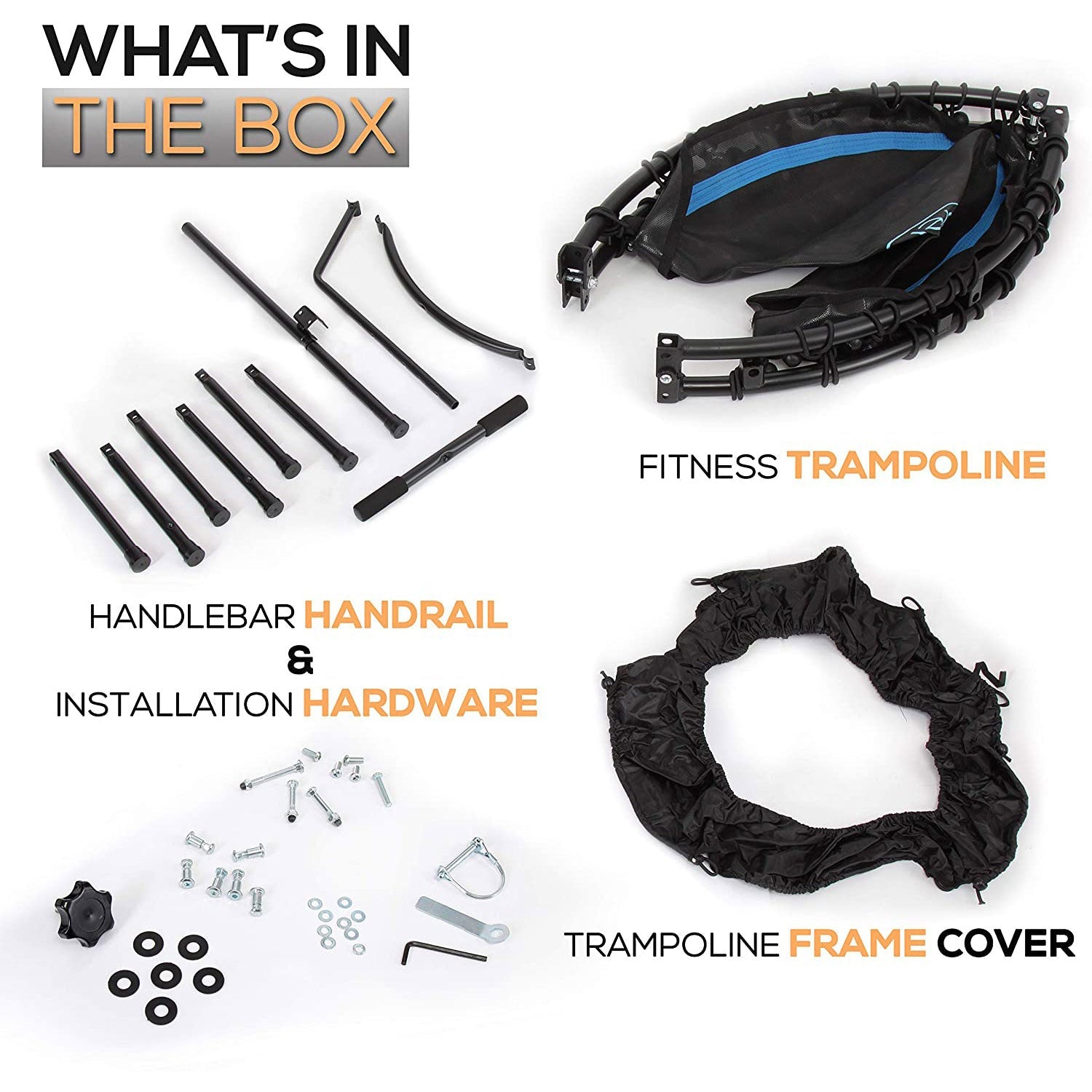 The padded handrail is easy to grip and hold on to for stability while jumping. With a sturdy steel rust-proof powder-coated frame, you can use this trampoline year after year. When you're not using the trampoline, easily fold it and store it in the included kit bag to save space. This fitness trampoline fits in small spaces and is the perfect addition to your at-home playground or gym.