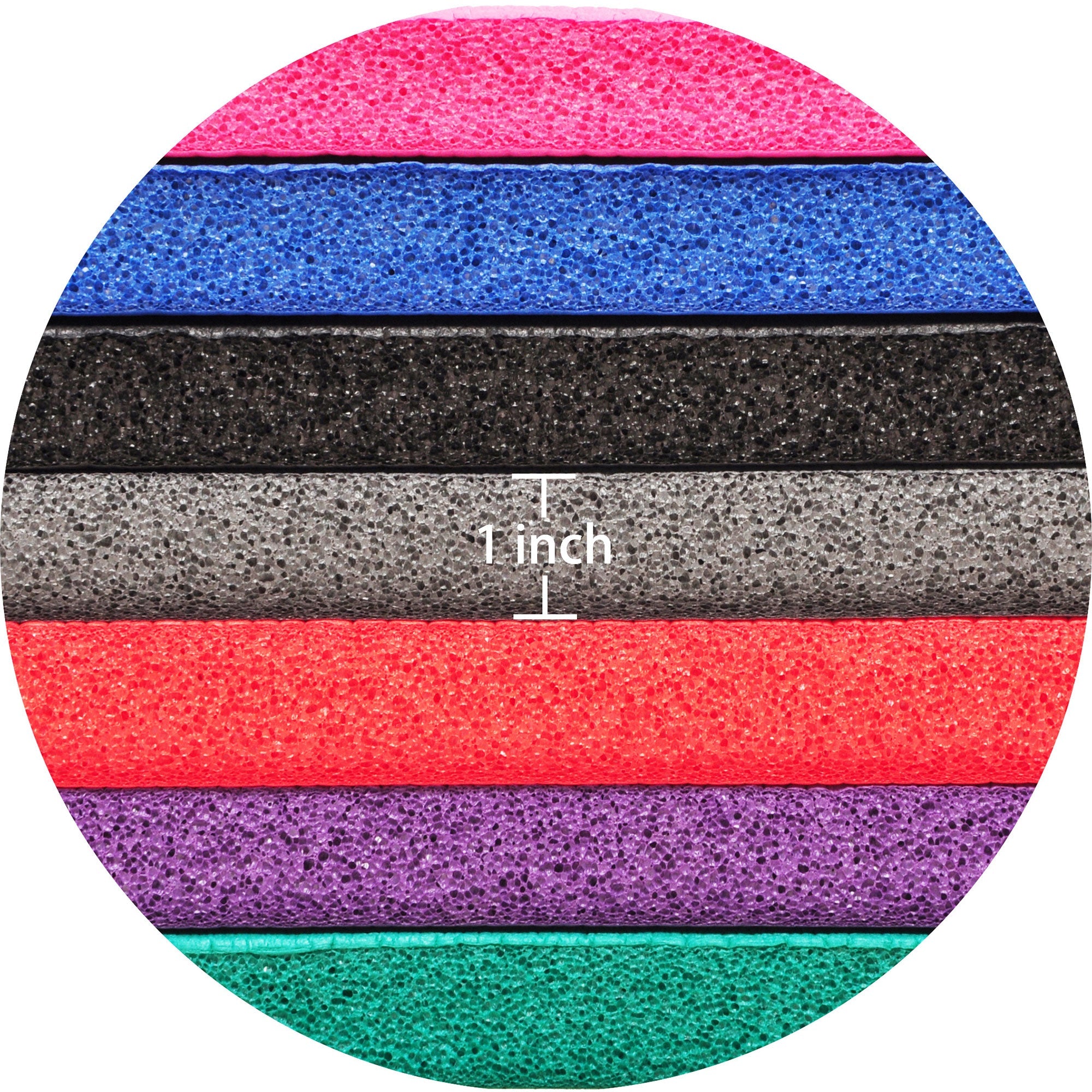 • High-density, 1-inch-thick premium foam mat comfortably cushions the spine, hips, knees, and elbows on hard floors