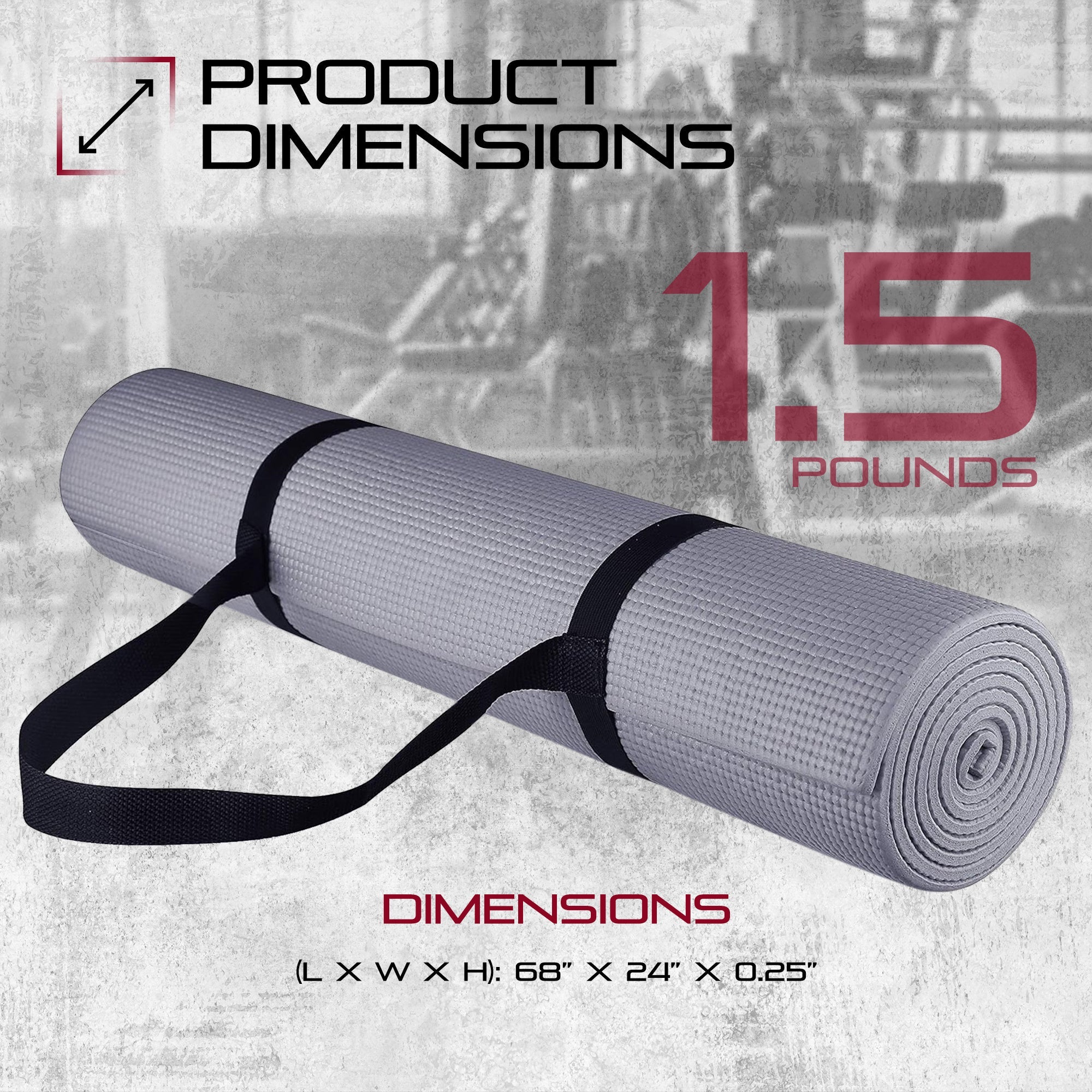 Signature Fitness All Purpose High Density No Tear Exercise Mat w/Strap, Gray