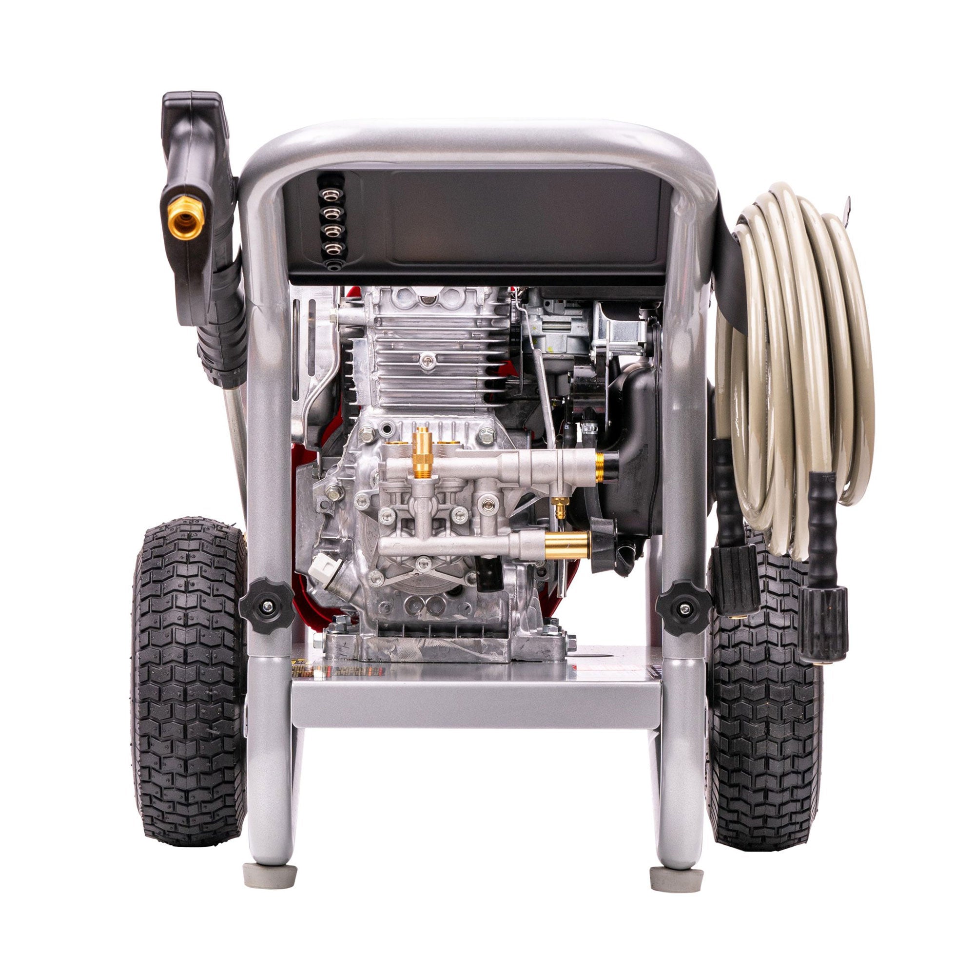- With a welded powder-coated steel frame, this pressure washer is designed for long-lasting durability, even in challenging conditions