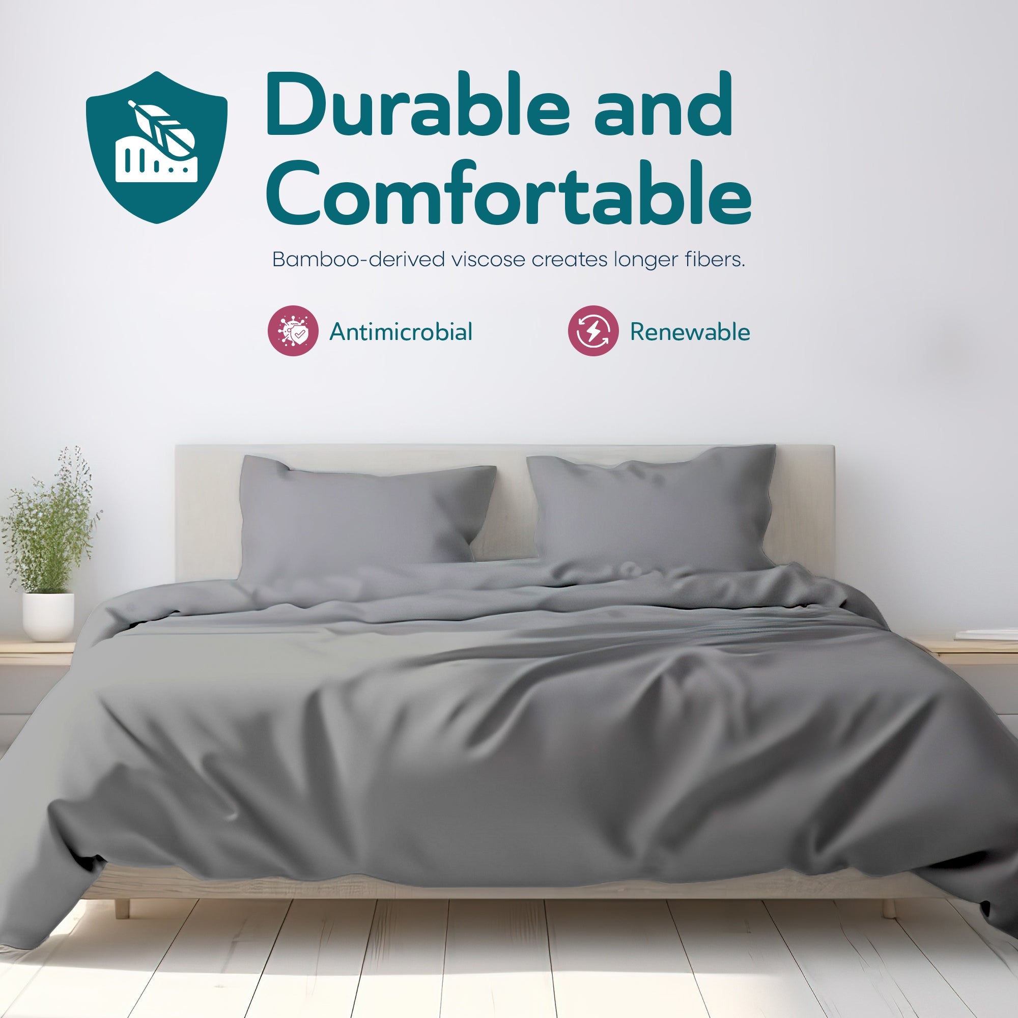 Sleepgram Viscose from Bamboo Full Bed Sheet Set with 2 Pillowcases, Grey Stone