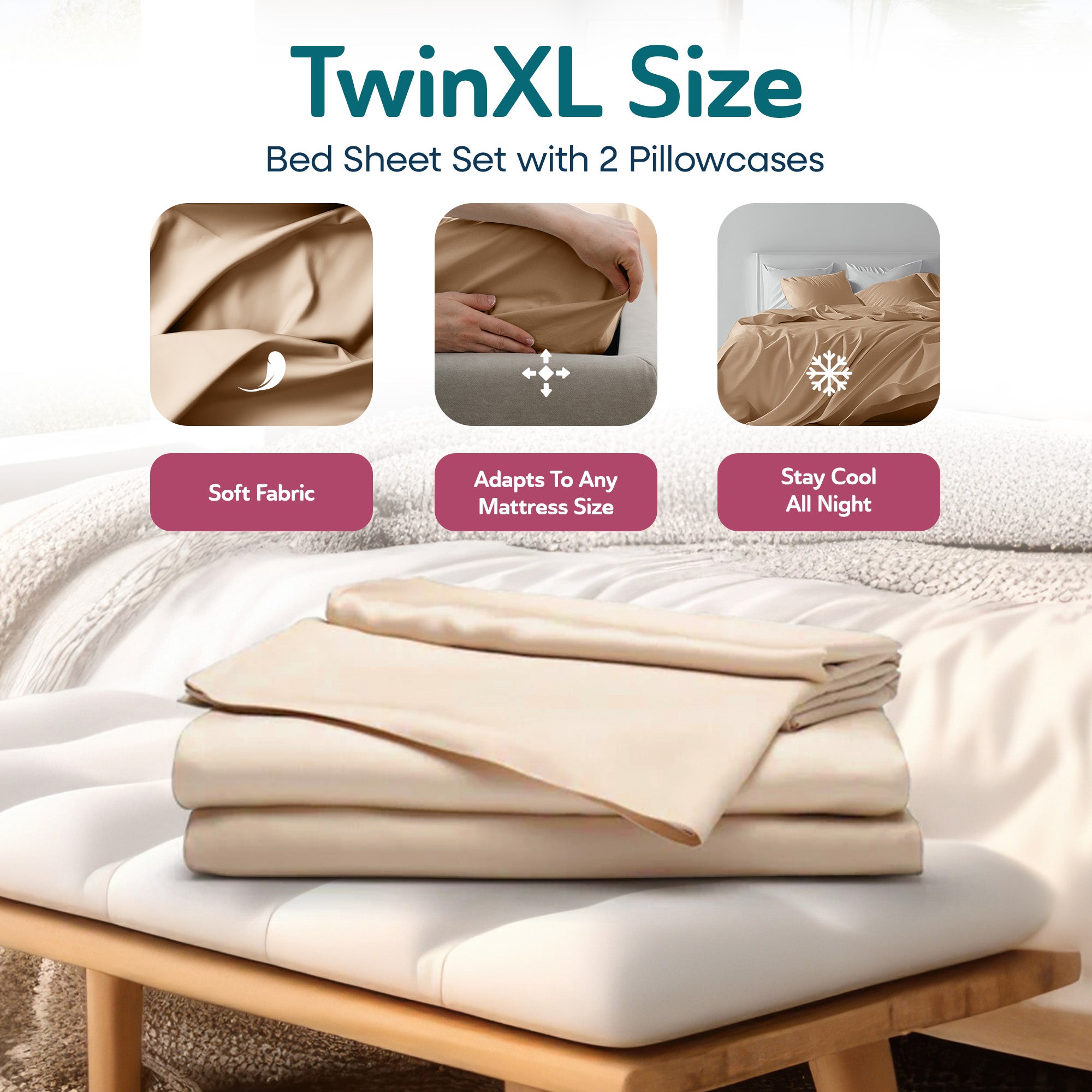 Sleepgram Viscose from Bamboo TwinXL Bed Sheet Set w/2 Pillowcases, Sand