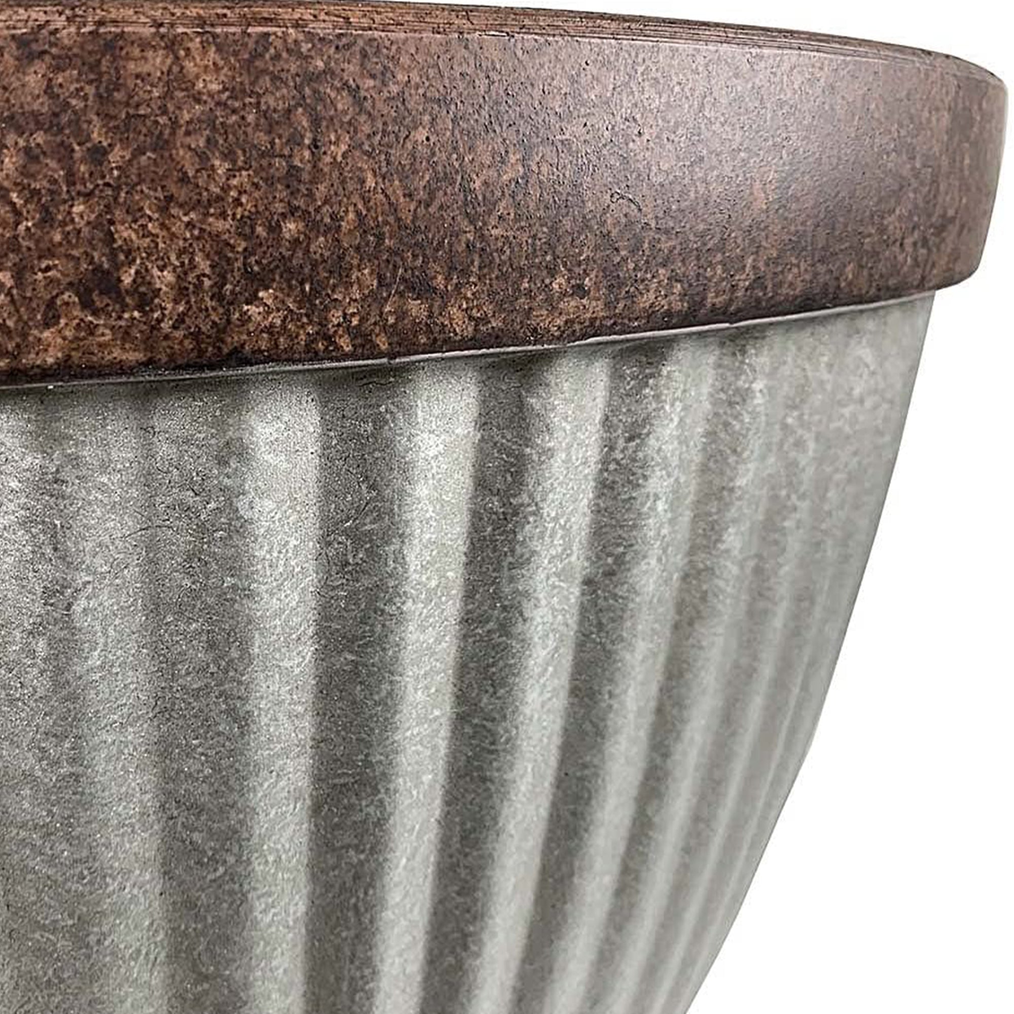 Bring back some touch of outdoor rustic vibe with this Southern Patio Westlake Collection 15" Rustic Round Pleated Planter, the ideal solution for your gardening needs. With its lightweight and durable design, this planter offers a convenient alternative to traditional metal planter boxes. Crafted with weather-resistance in mind, the coating that resists UV ensures that this planter won't crack or fade in the sun, unlike metal alternatives. Say goodbye to rust and hello to long-lasting beauty.