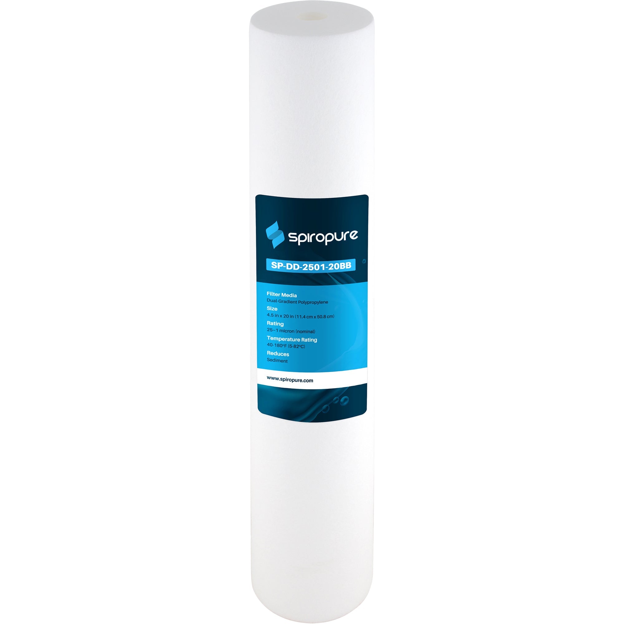 Whether you're looking to improve the quality of your drinking water or need a reliable filtration system, use the 6-pack of 20 by 4.5-Inch Dual Gradient Polypropylene Water Filters from SpiroPure.