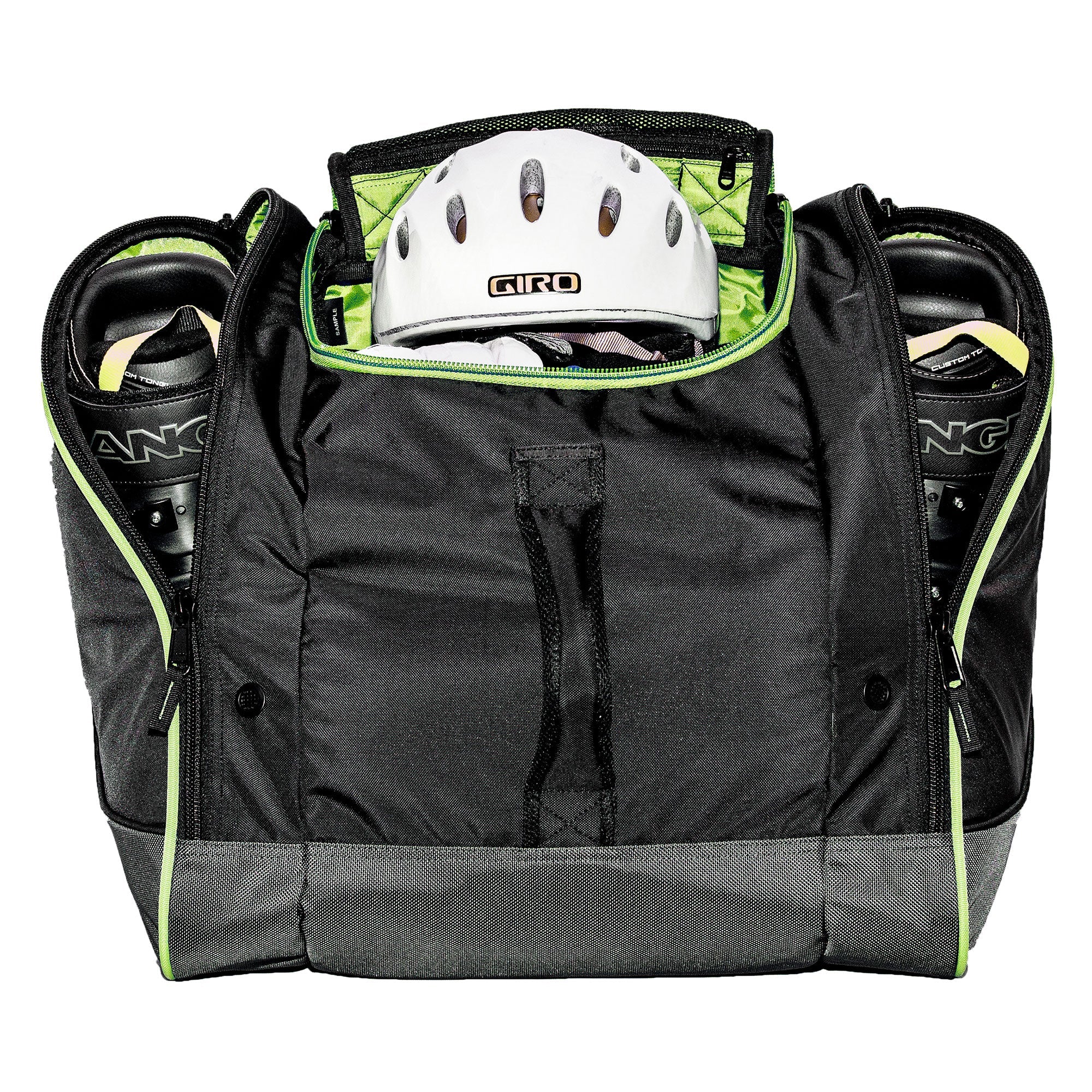 • Travel boot bag features an extra-large 70-liter capacity, complete with side boot compartments (for 1 or 2 pairs of boots up to size 34) that can hold your valuables such as clothing, gloves, helmet, and goggles