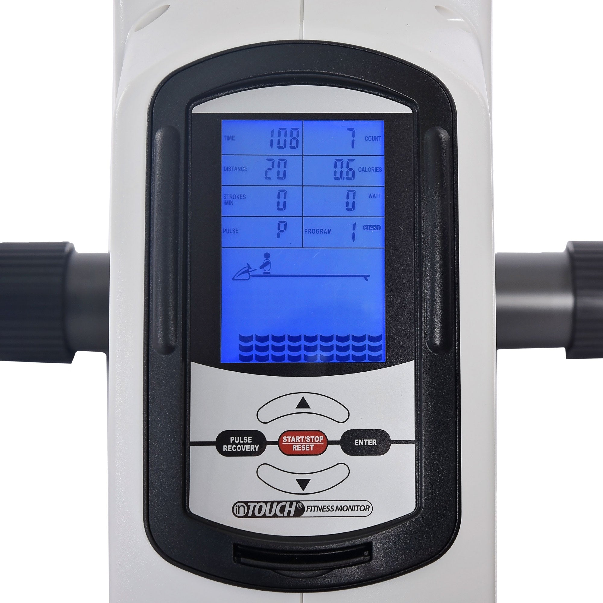 • Backlit InTouch Fitness LCD monitor, which tracks time, count, distance, calories, strokes per minute, pulse, and watt