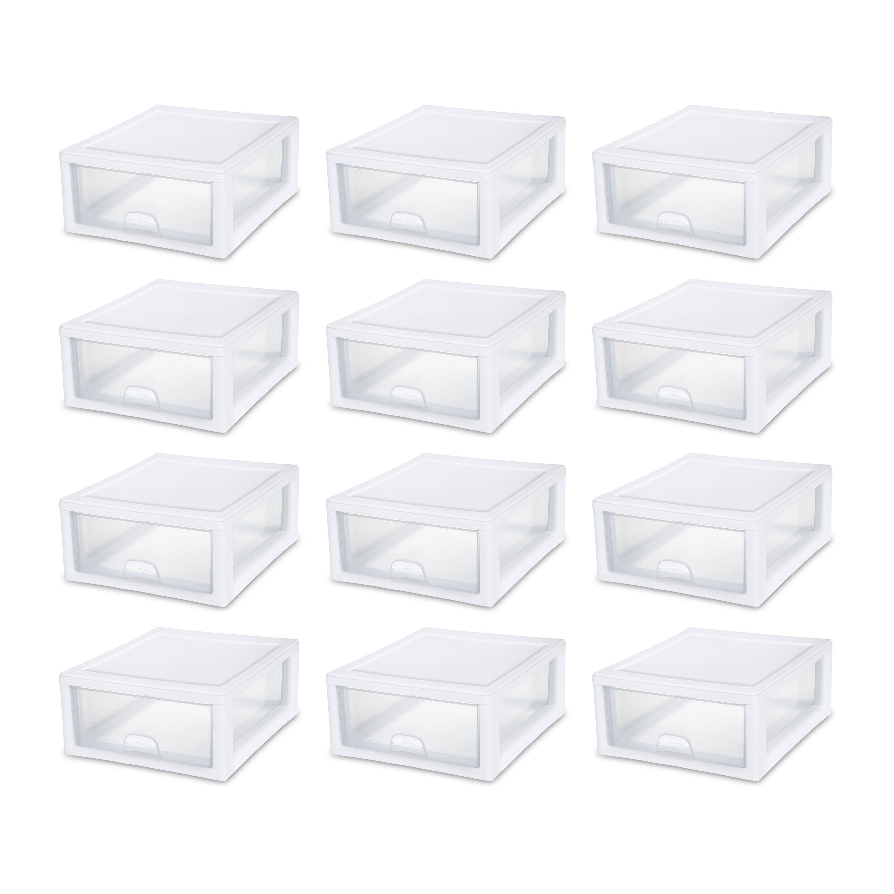 Sterilite 16 Quart Clear Plastic Stacking Storage Drawer Container Box, 12 Pack
