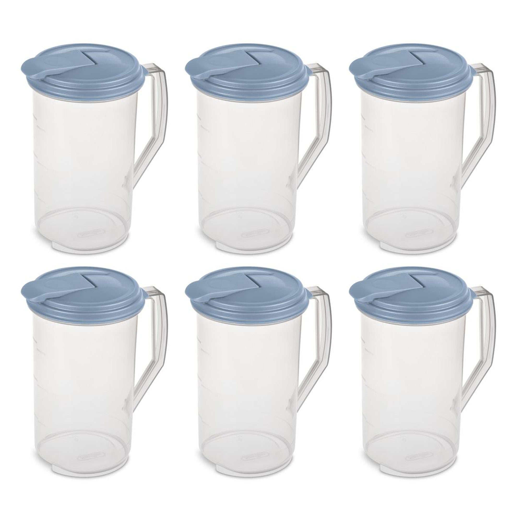Sterilite 2 Quart Plastic Hinged Pitcher with Comfort Grip Handle, Blue, 6-Pack