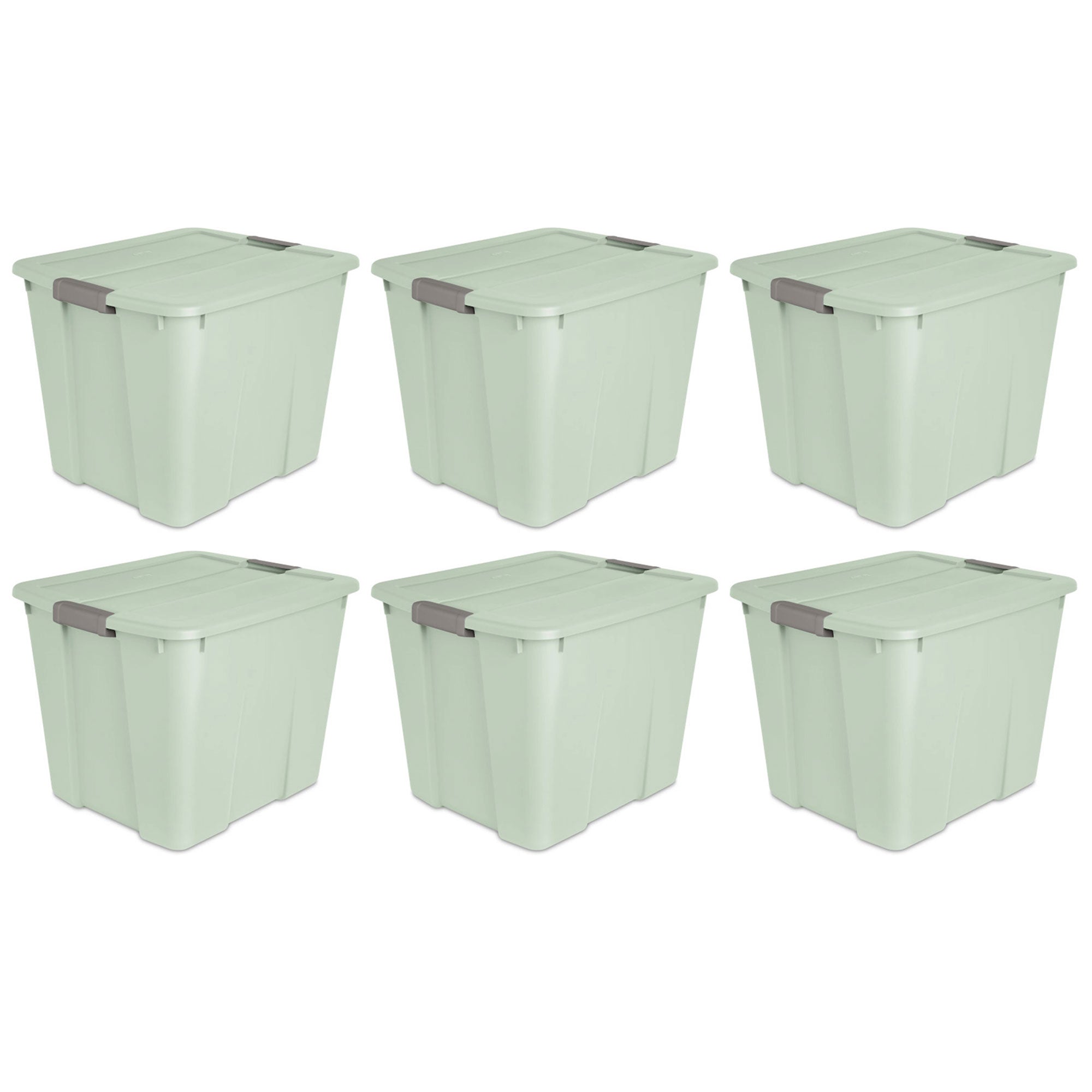 Sterilite 20 Gal Latch Tote Home Storage Organizer Bin w/ Handles, Mint, 6-Pack