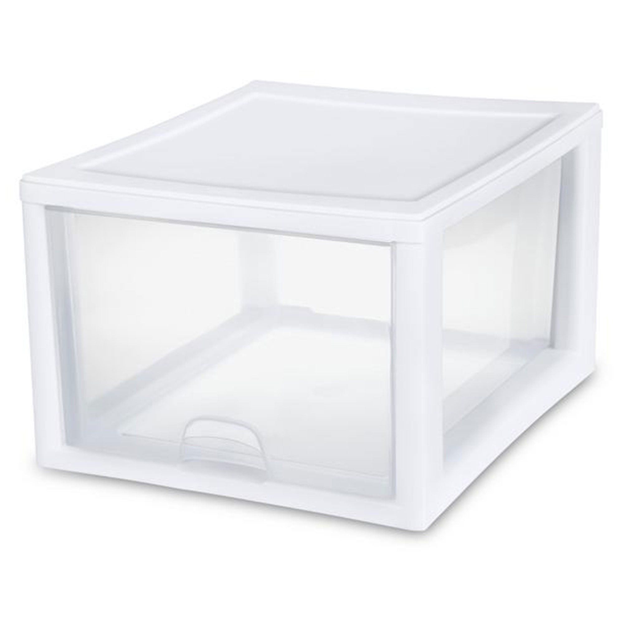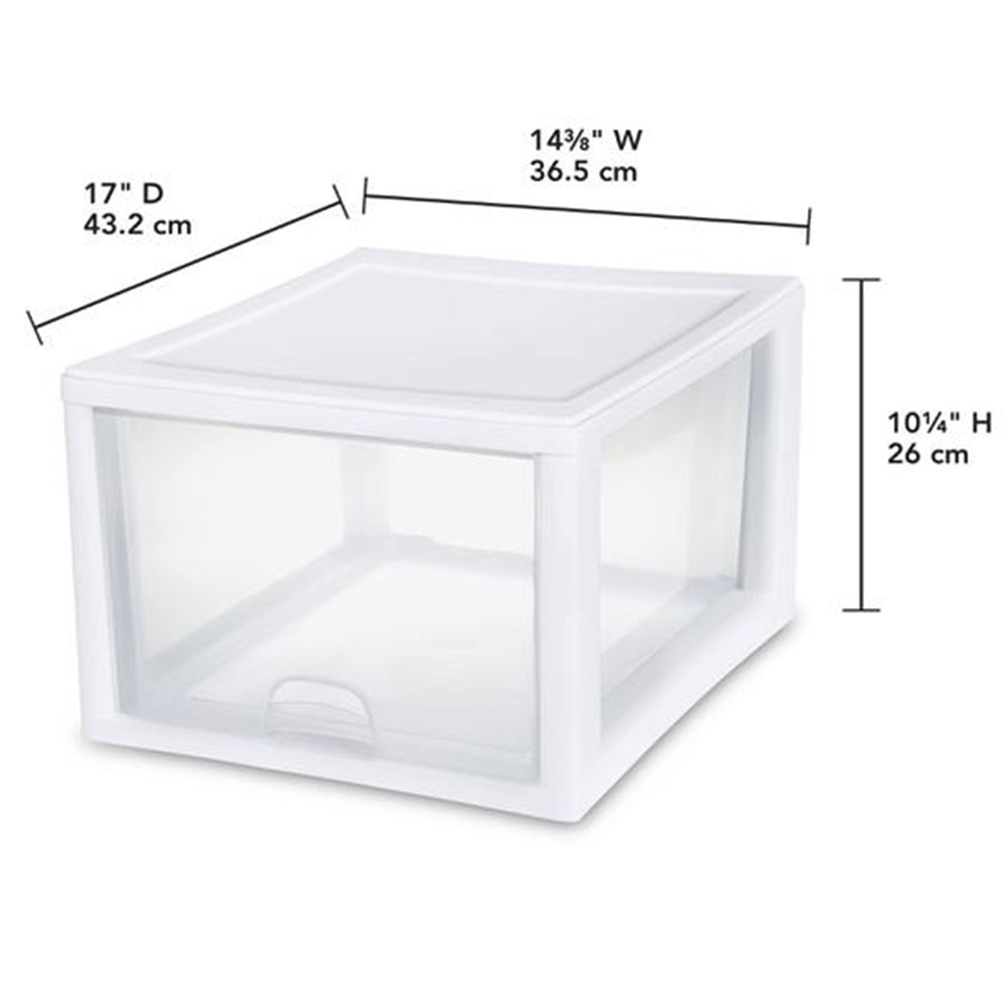 Organize clothes, shoes, linens, and other home essentials with the 4-pack of 27-Quart and 6-pack of 16-Quart Storage Drawer Containers from Sterilite. The modular stacking plastic containers cater to various storage needs and can make for effective organization.