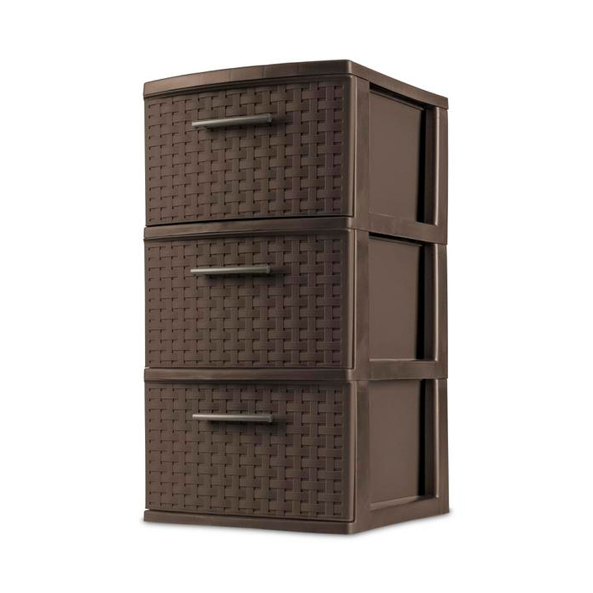Sterilite 3 Drawer Decorative Plastic Weave Storage Tower, 8-Pack, Espresso
