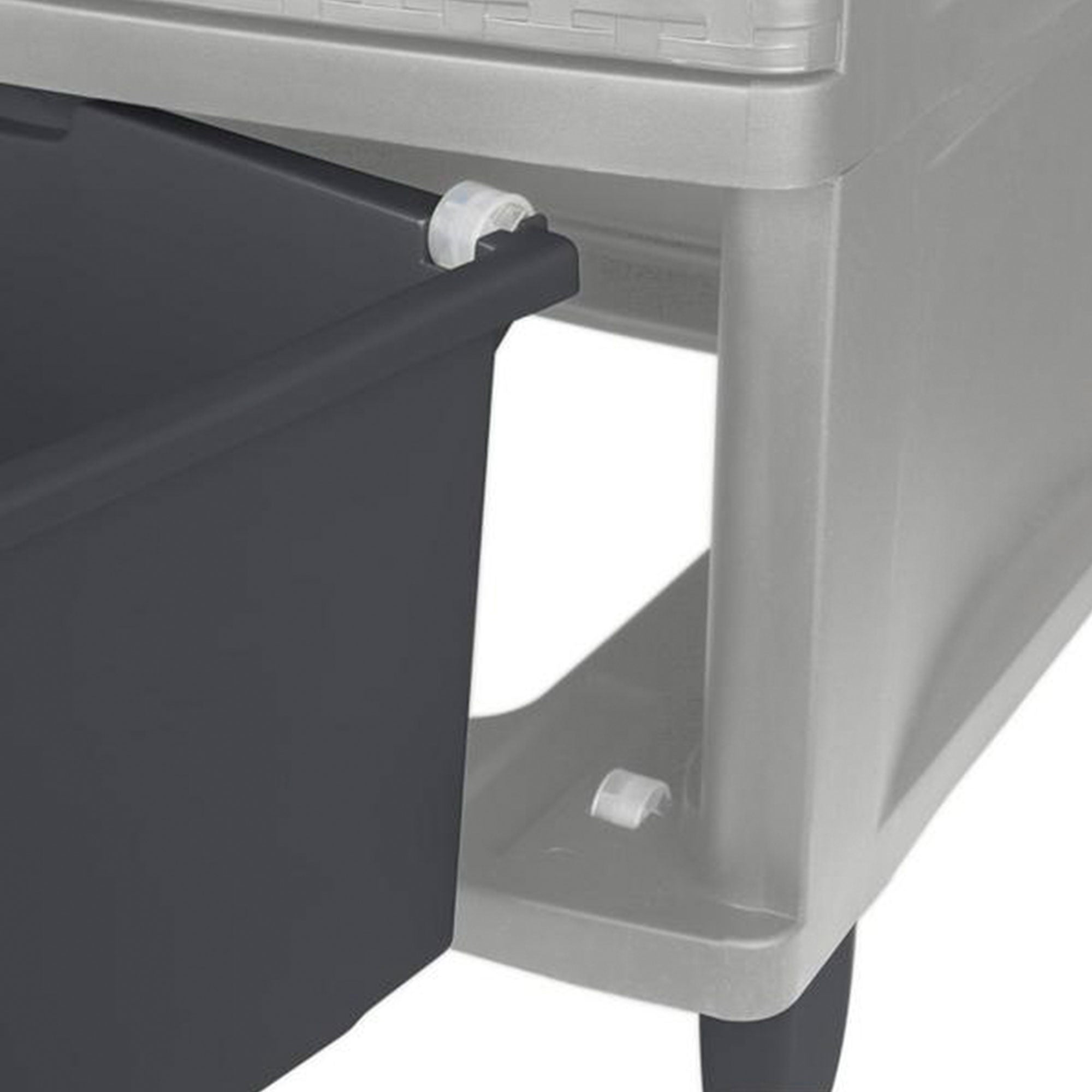 - Opaque drawers on hidden rollers keep contents concealed and clutter controlled while providing easy access even under heavy loads