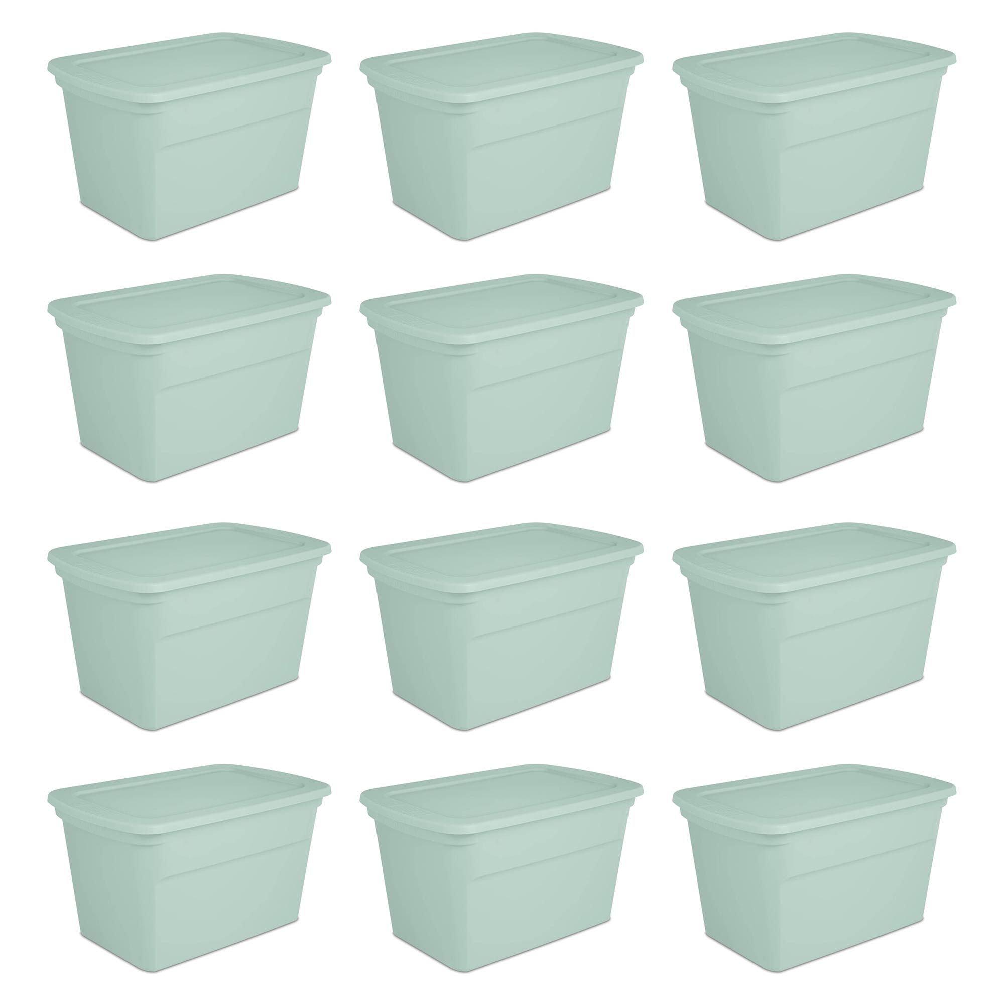 Sterilite 30 Gal Latch Tote with Handle for Home Storage, Mindful Mint (12 Pack)