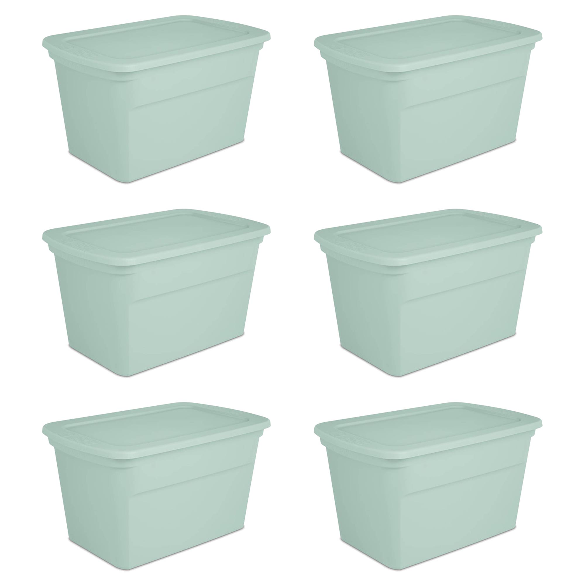 Sterilite 30 Gal Latch Tote with Handles for Home Storage, Mindful Mint (6 Pack)