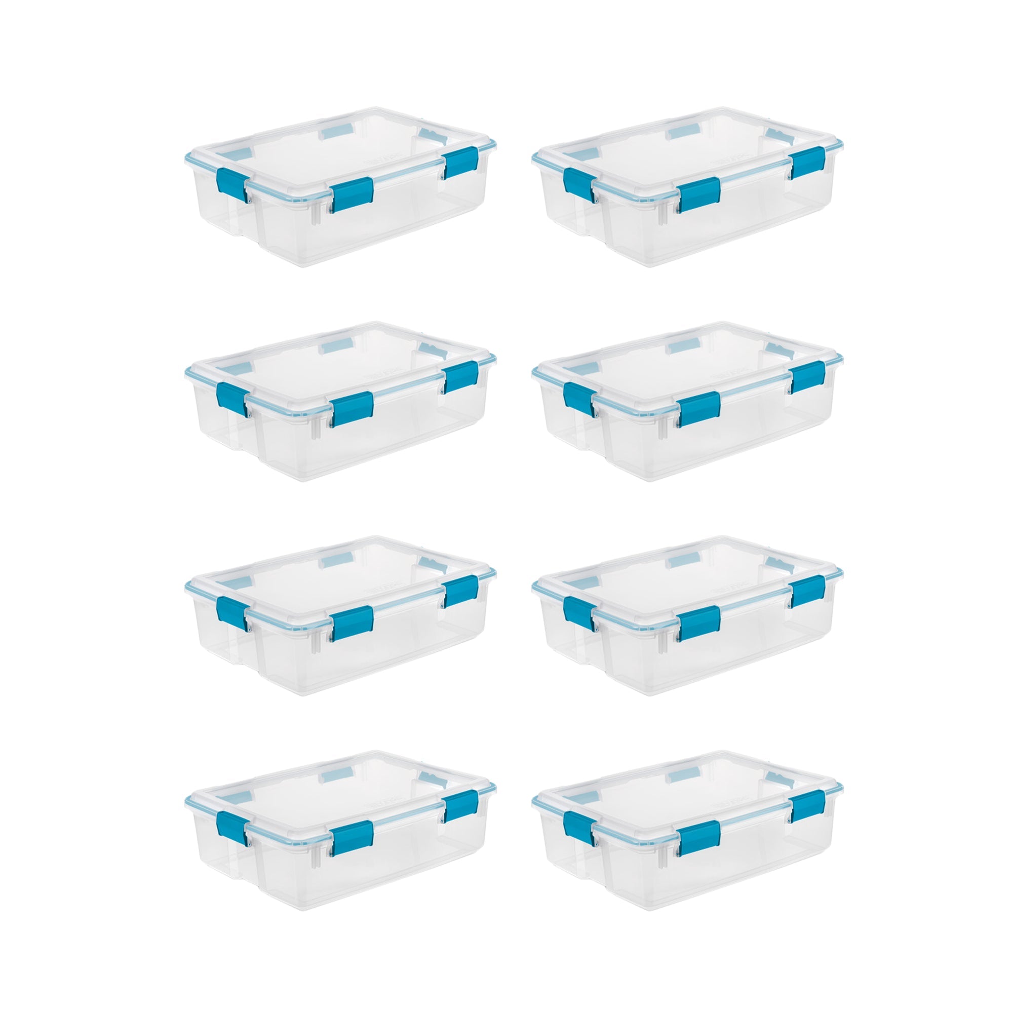 Ensure your personal belongings are kept secure with the gasket seals that line the lids. With secure latching lids, your favorite things will remain safely inside and not be ruined by unexpected elements. Built with a clear base and lid, you're able to conveniently identify the contents inside, so you won't have to spend time digging around to find what you're looking for. The thin design of these totes makes them ideal for under-bed storage to maximize space while the handles provide you with a simple transporting solution.