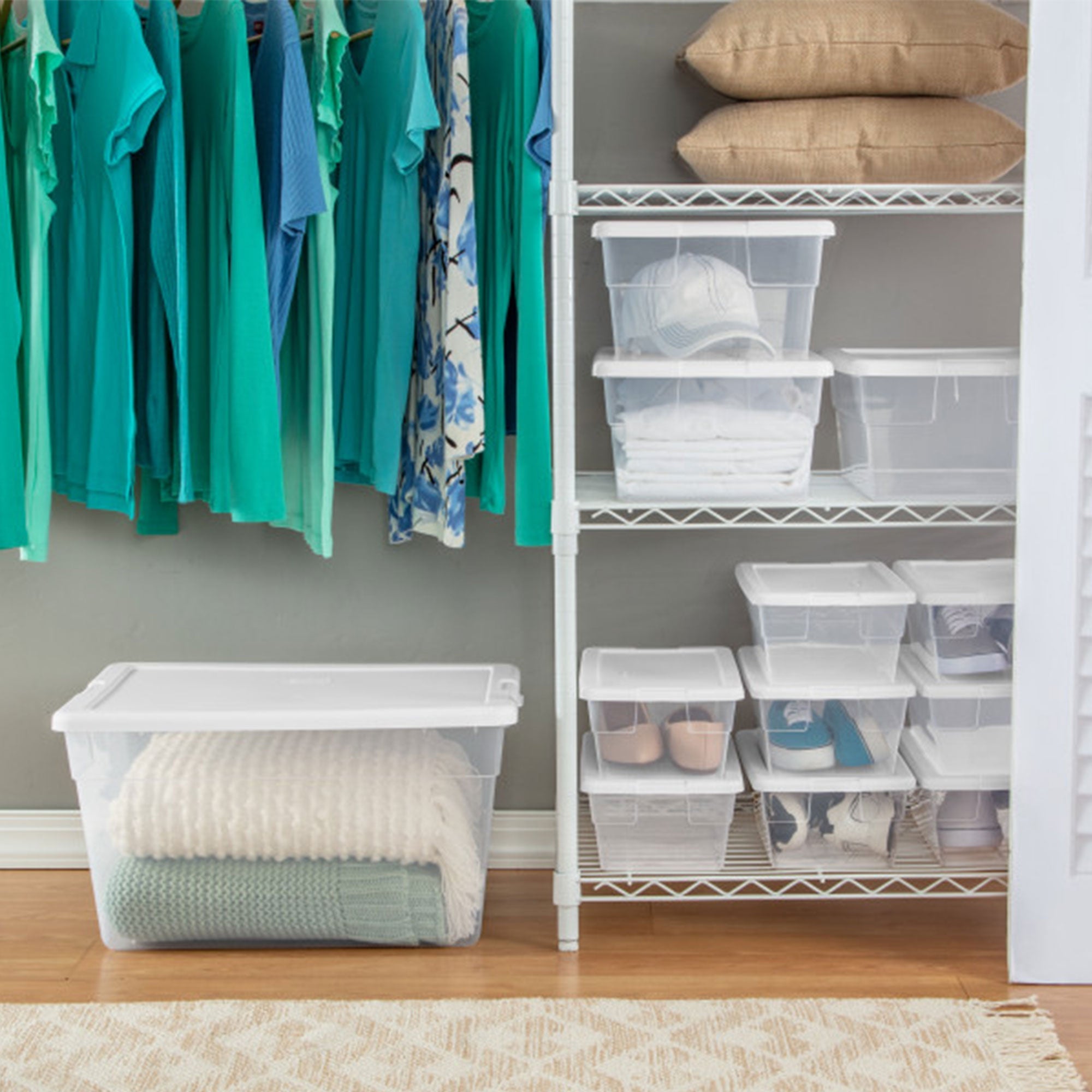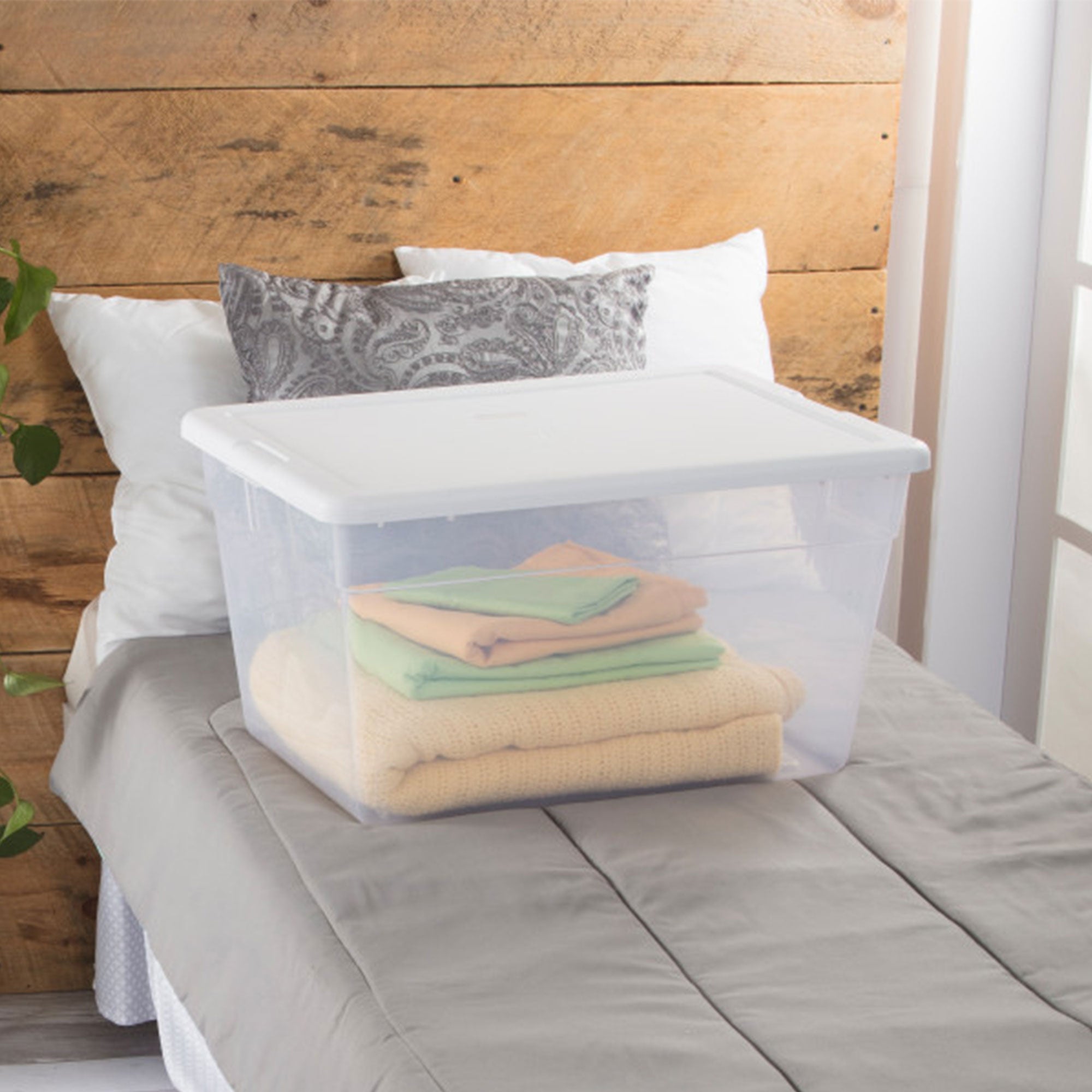 Whether you're looking for a specific sweater that's stored away or digging out the holiday decor, these clear boxes make everything easy to locate thanks to the see-through base plastic design. The lids snap firmly onto the base to keep contents contained and secure, and its fashionably contoured end panels create recessed handles for easy lifting and transporting. The lids' recessed shape also enables stackability, demonstrating vertical organization's ability to free up space. Blankets, towels, seasonal decorations, clothing, games, and other items fit neatly inside, letting you store them away without hassle.