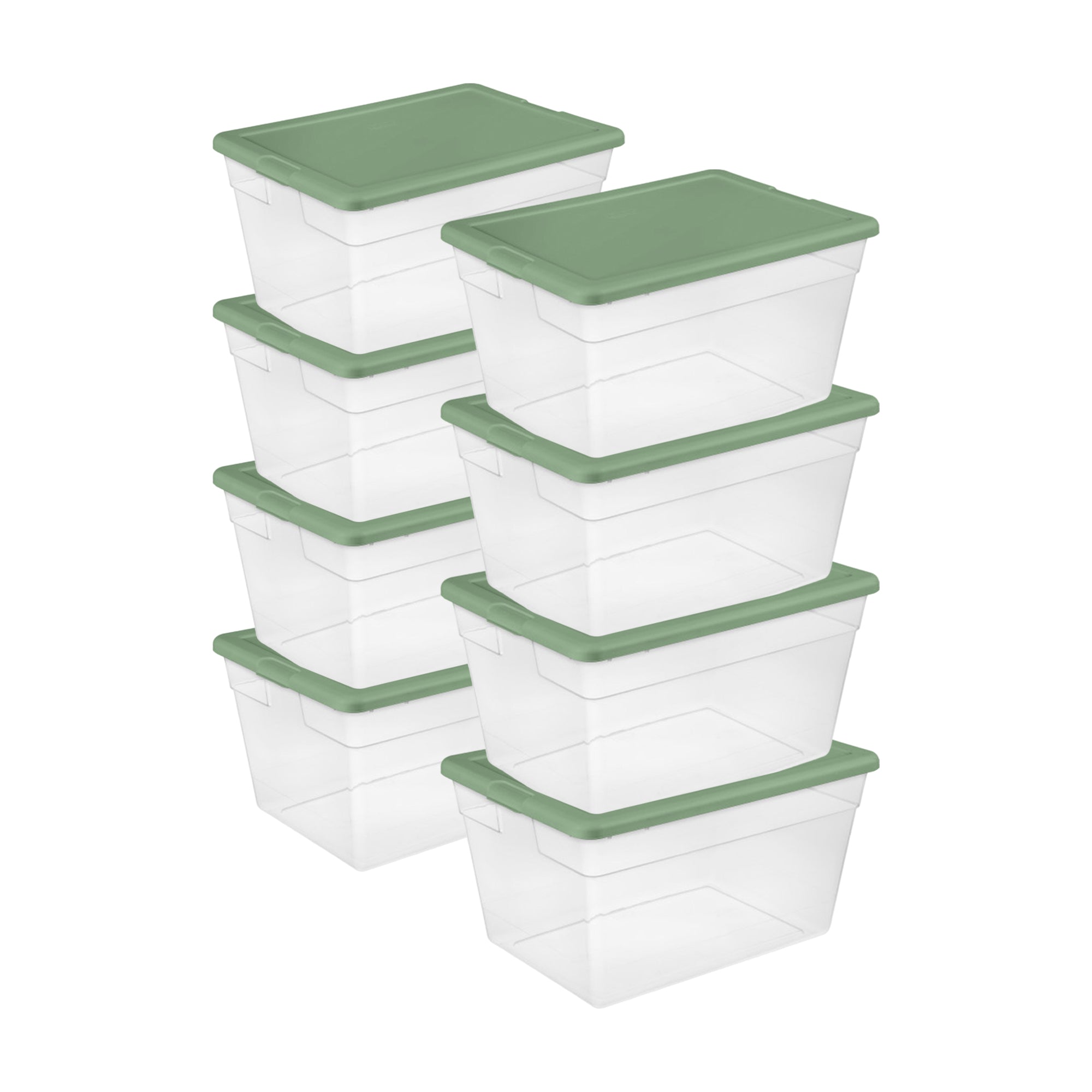 Sterilite 56 Quart Plastic Stackable Storage Container Tote, Crisp Green, 8 Pack