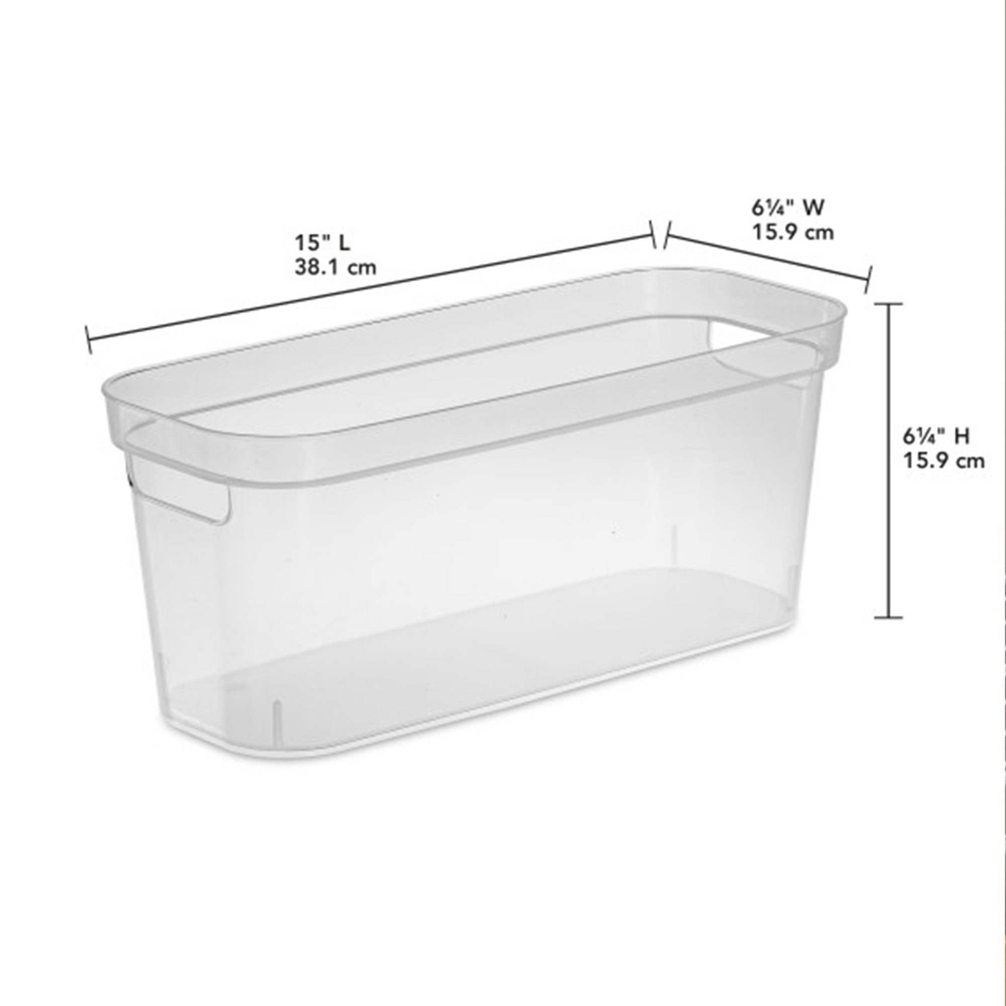 - 24-pack of narrow clear plastic multipurpose storage bin provides ideal space to store away household items neatly, where they are most frequently used