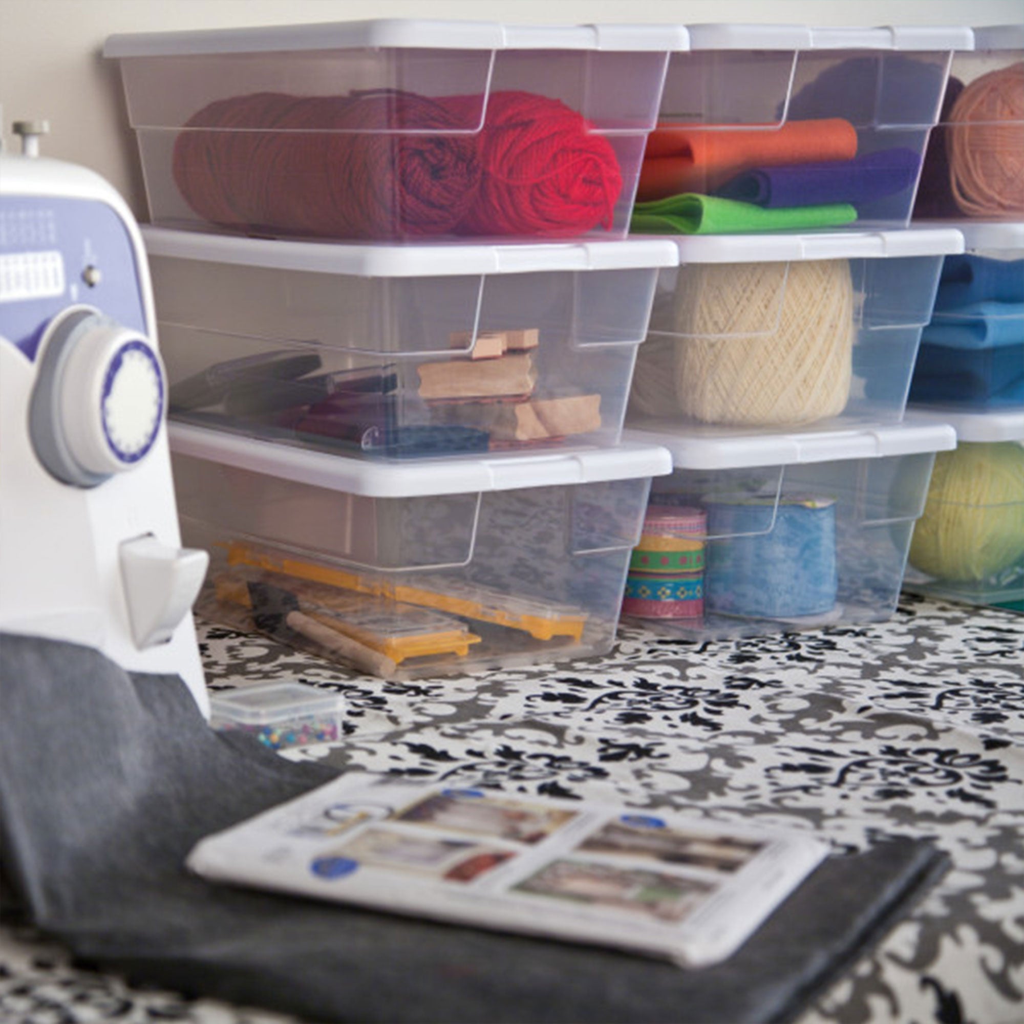 - Sterilite snap-close (12) storage bins are the perfect size for crafting and classroom supplies, small tools, and holiday decor, with a clear base allowing quick viewing of contents