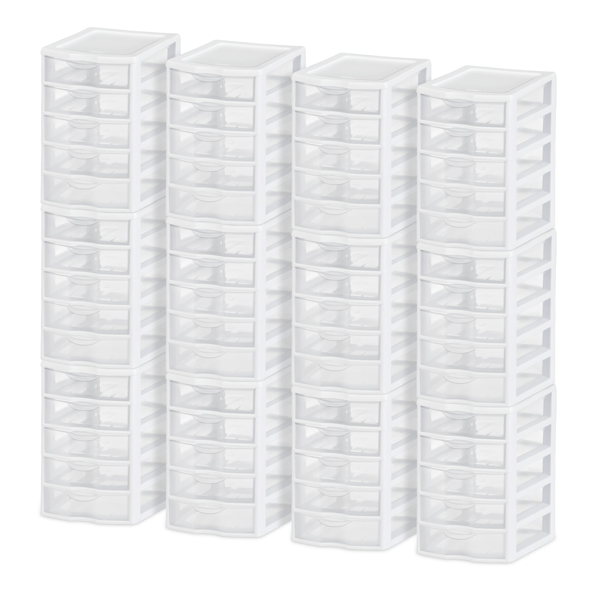 Sterilite Clearview Plastic Small 5 Drawer Desktop Storage Unit, White (12 Pack)