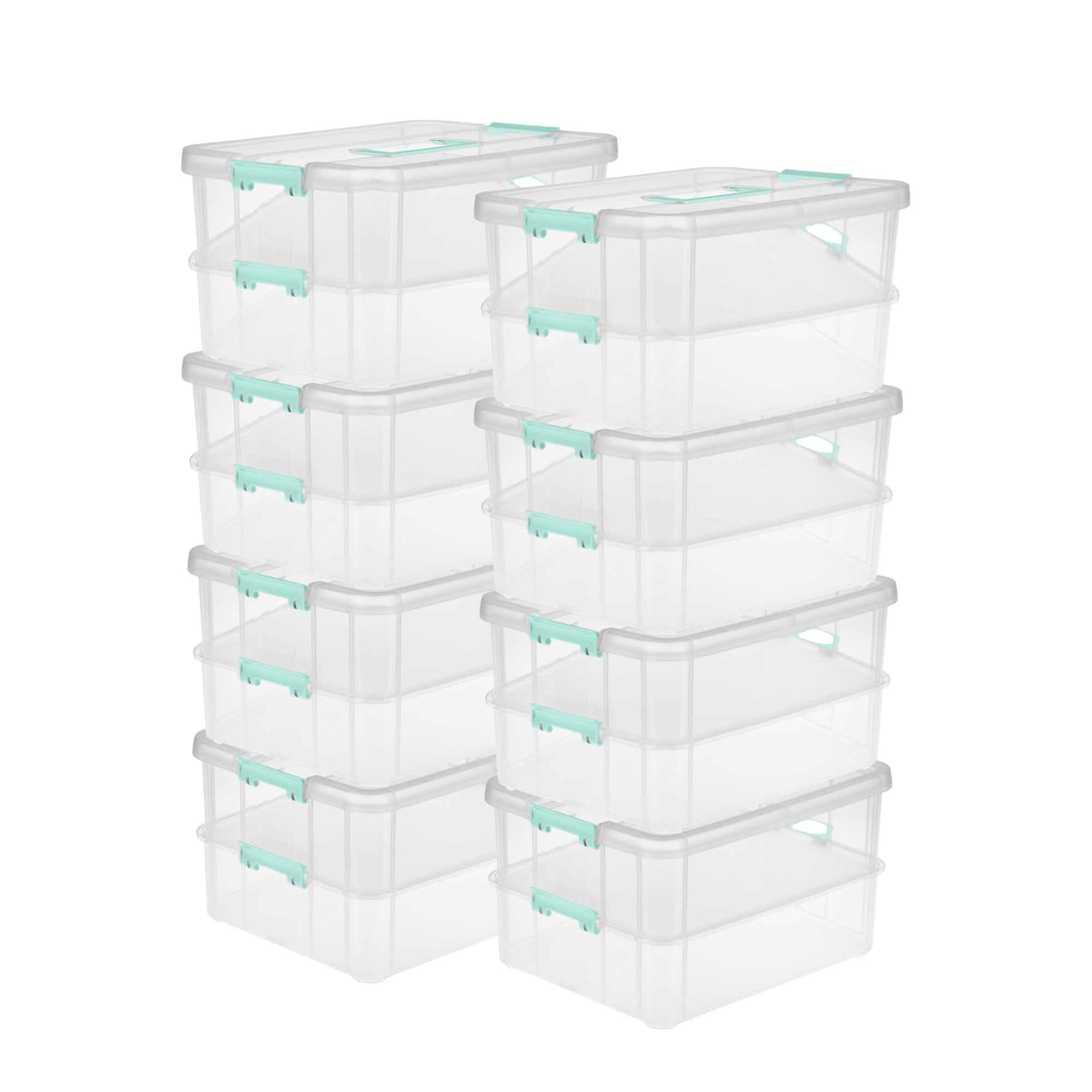 Sterilite Convenient Home 2-Tier Layer Stack Carry Storage Box, Clear (8 Pack)