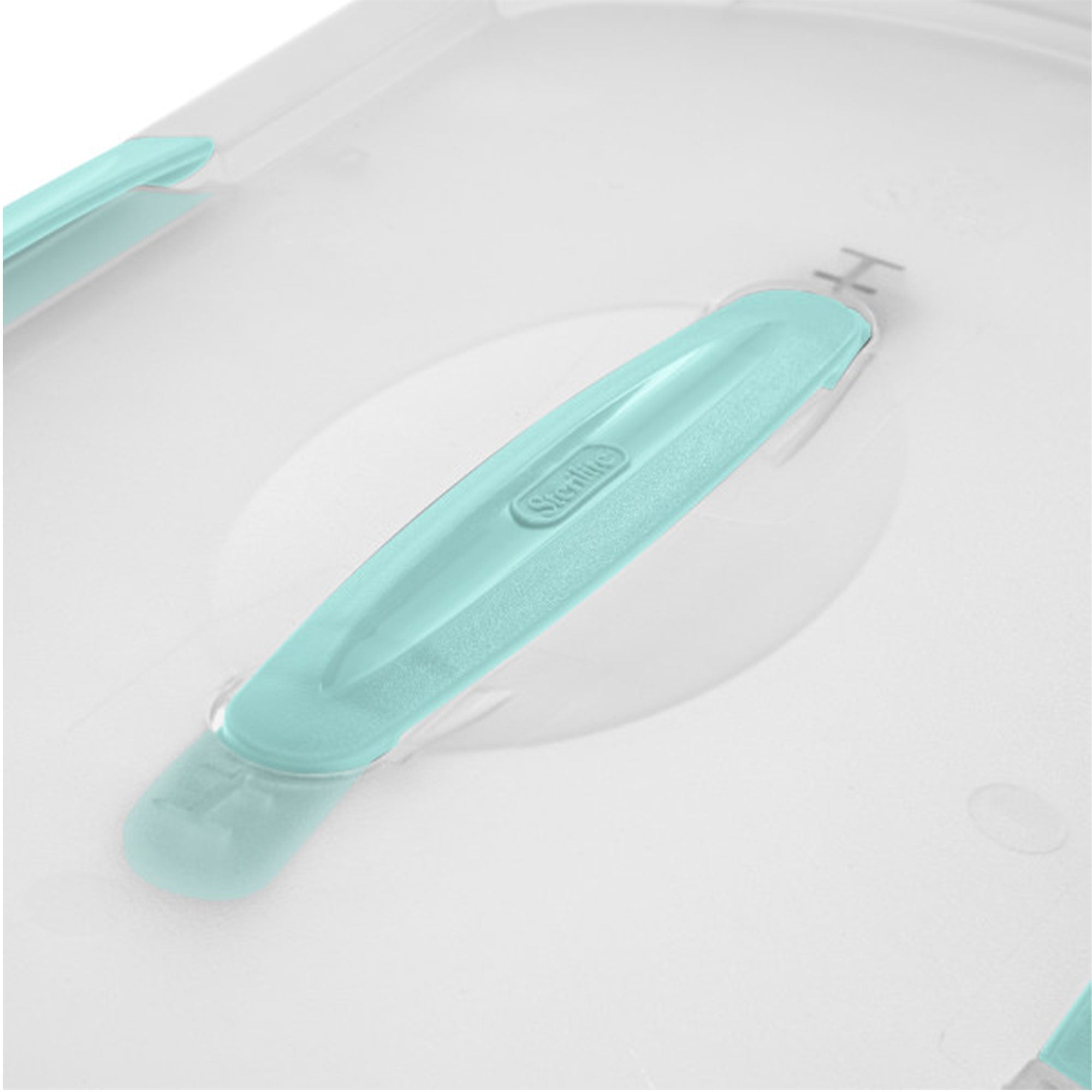 Storage solution that you can take on the go, a unique portable solution for storing and organizing home, office, arts and crafts, knitting, gift wrapping supplies, health and beauty supplies, hobby supplies, and more. These file storage boxes can hold letter-sized hanging folders, making them perfect for keeping important documents safe. A clear plastic base and lid make it easy to identify the contents inside without having to rummage through the contents. Lid locks into place with the bright blue latches, keeping everything sealed inside. Also, the lids have a comfortable and sturdy handle on top, so it's easy and convenient to carry to your meeting or new storage location.