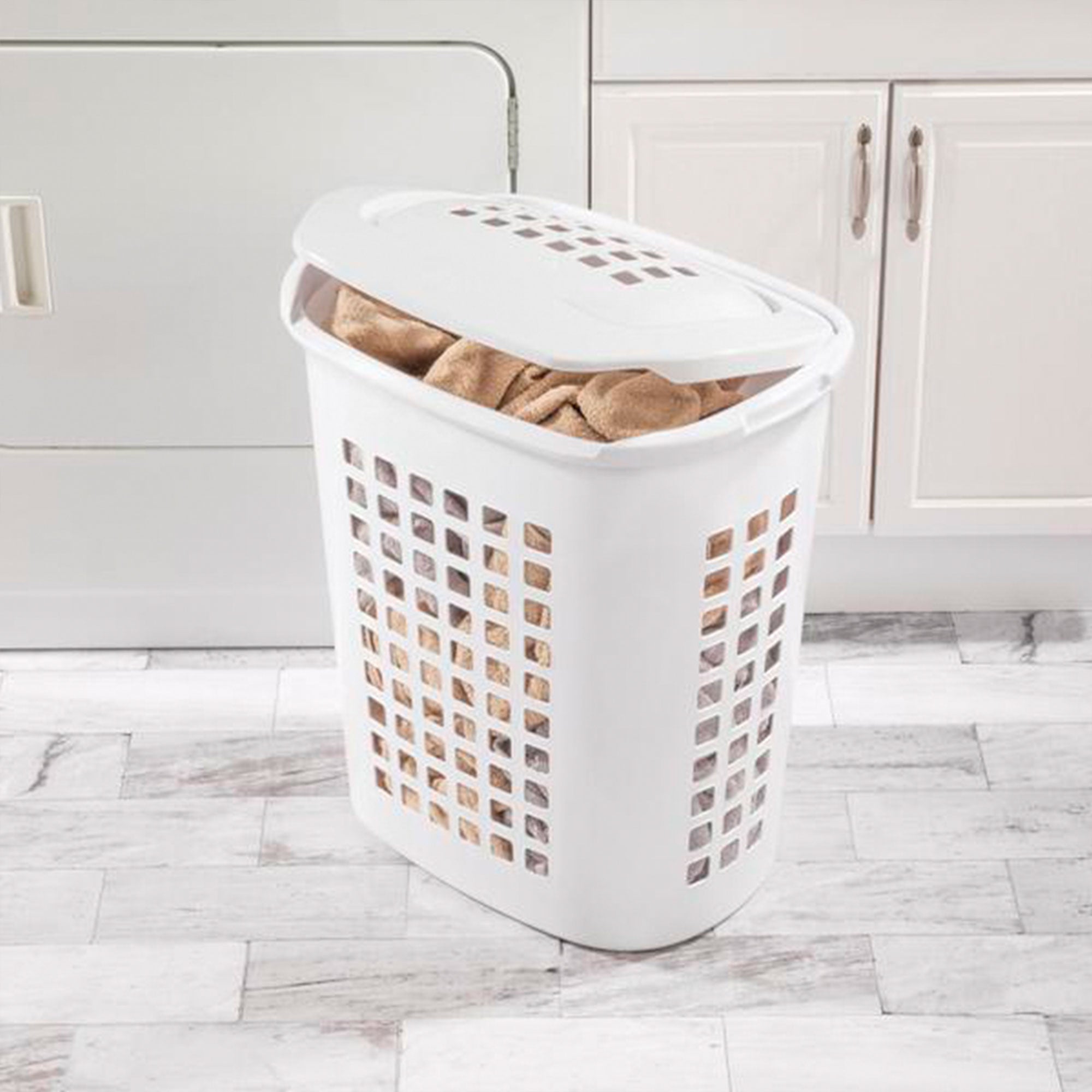 Stay happy, organized, and clean with the Sterilite 2.3 Bushell XL Lift-Top Laundry Hamper Basket.