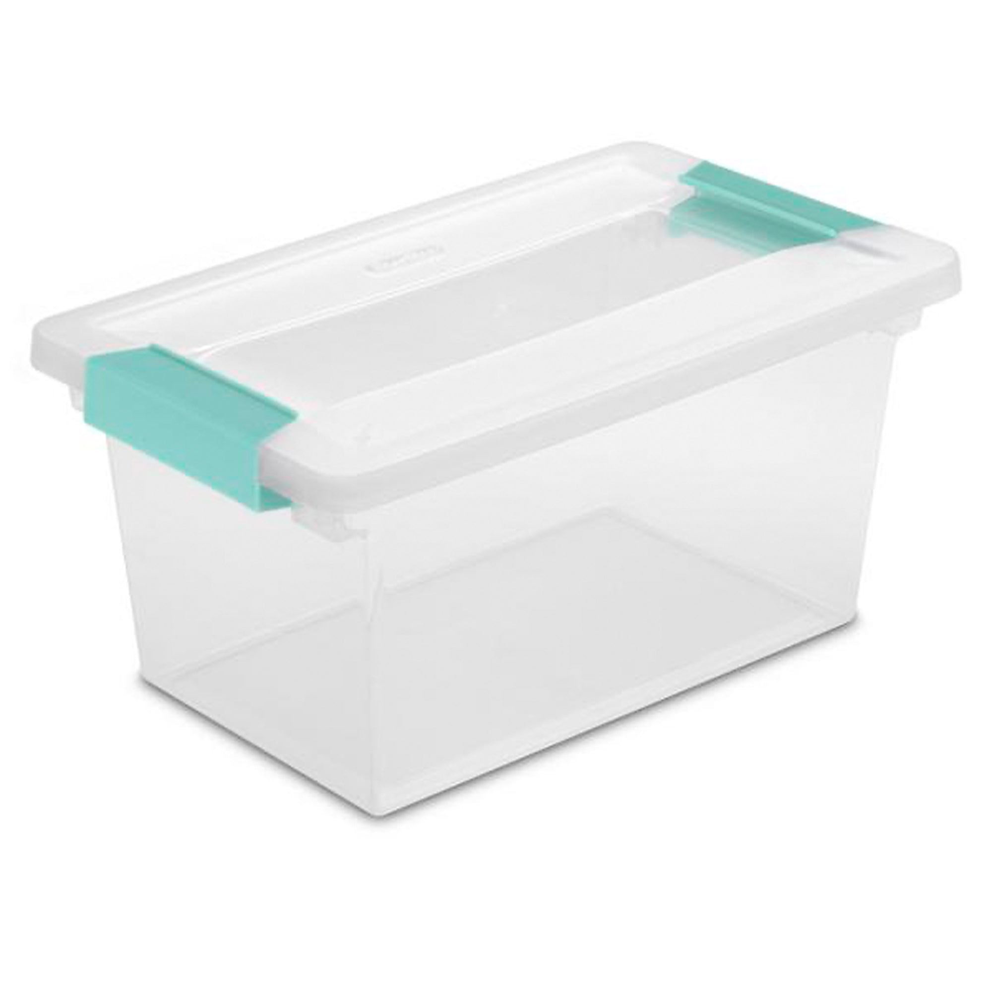 Durable and stylish, these bins are a great solution for organizing items throughout your home, such as paper clips, arts and craft supplies, or smaller items, like nails and screws. The clear base and lid allow contents to be easily identified from any angle, and the color accent latches ensure the lid remains secure to the base. The overall assembled dimensions of the mini boxes are 6.62 inches long by 5 inches wide by 2.75 inches high, and the dimensions of the medium boxes are 11 inches long by 6.62 inches wide by 5.378 inches tall.