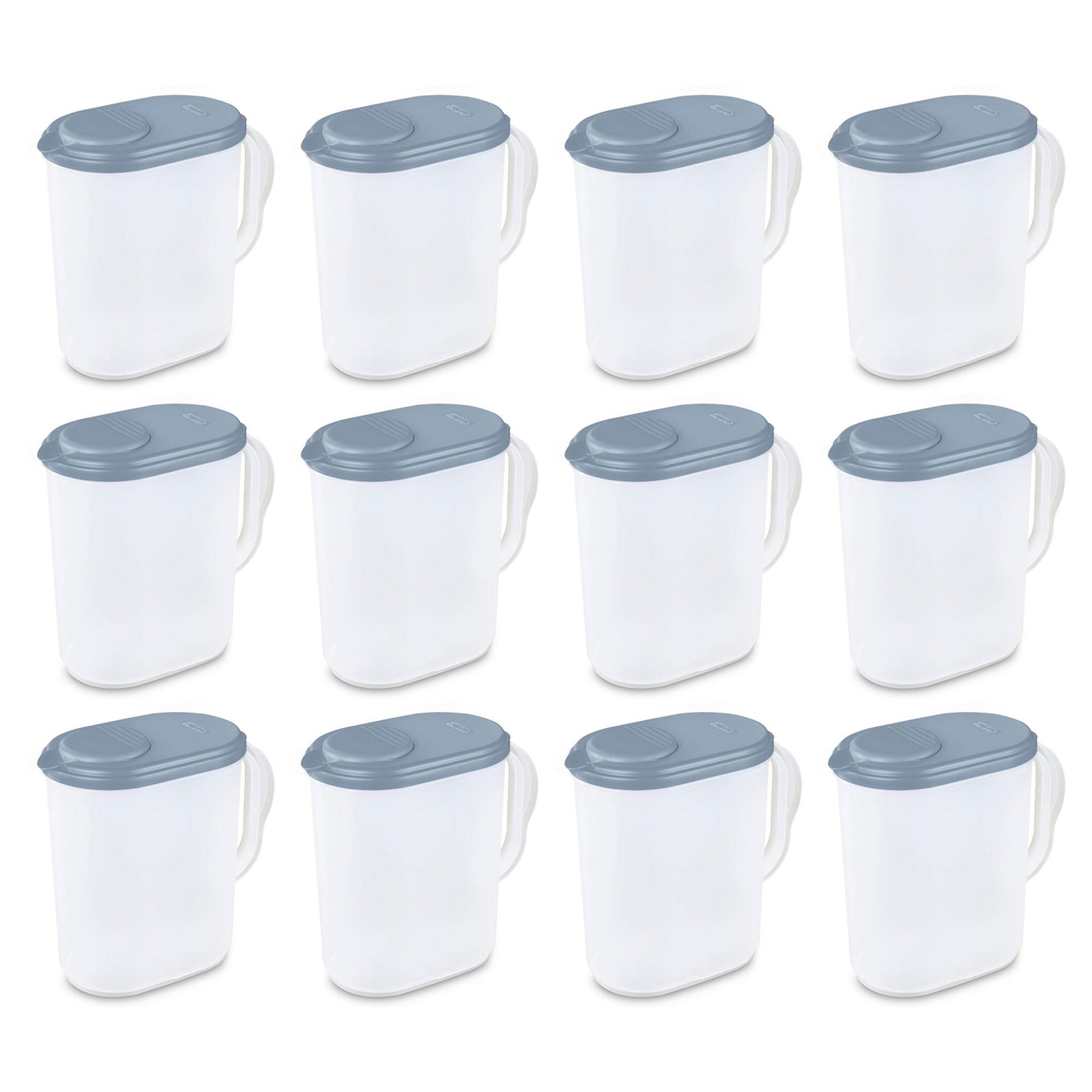 Sterilite Plastic Lidded Pitcher with Clear Base & Handle, Washed Blue, 12-Pack