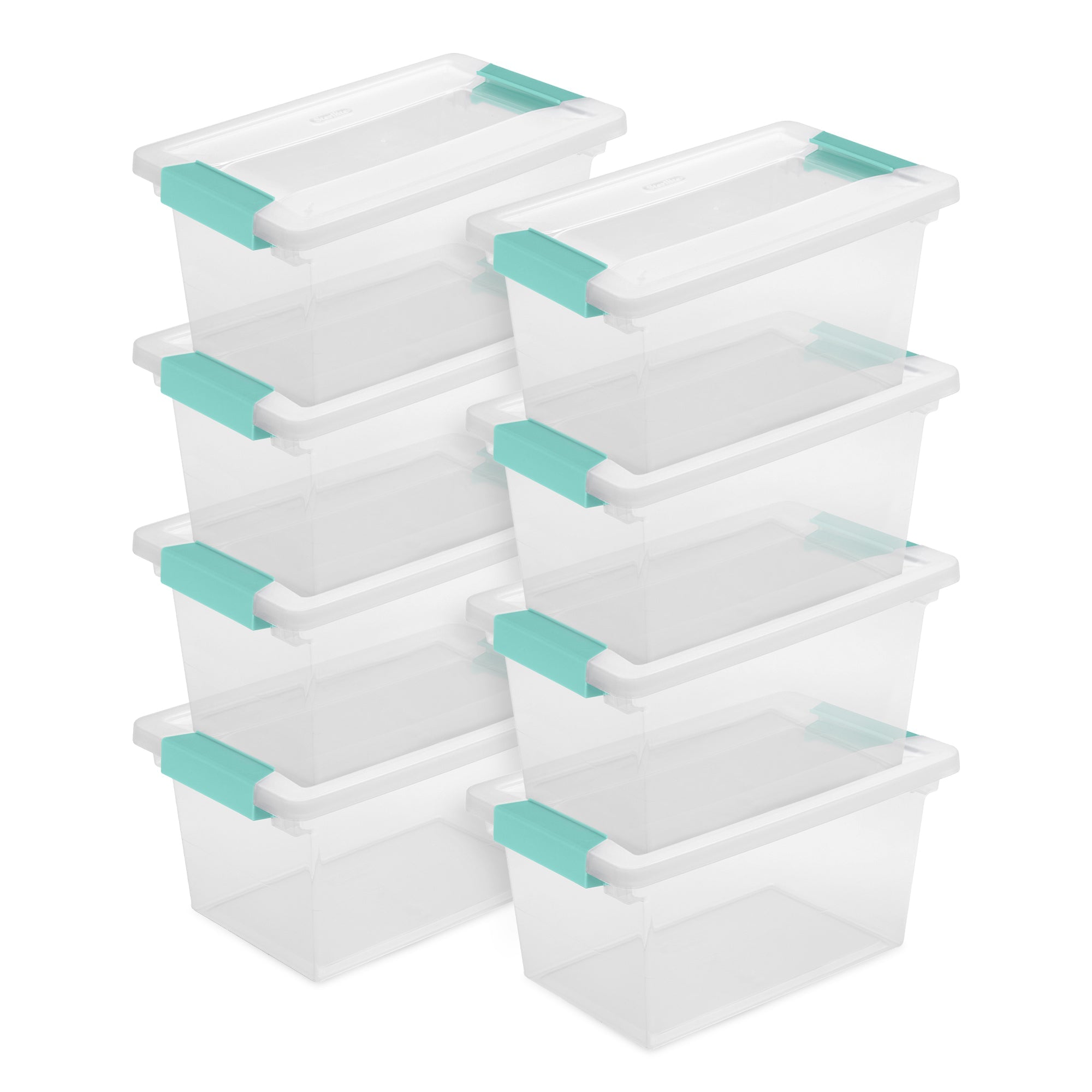 De-clutter your space and create your ideal storage system with the 8-pack of Plastic Medium Clip Storage Box Container with Latching Lid from Sterilite.