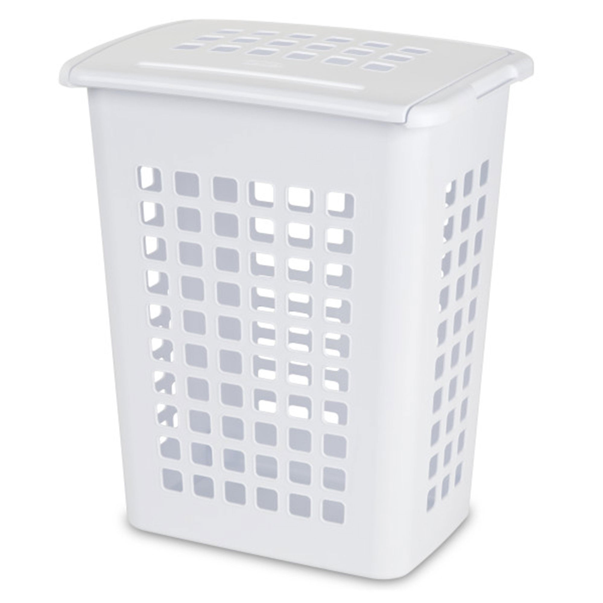 Collect dirty clothes in these plastic laundry hampers and then easily carry them to the washer. The sturdy rims provide added strength when lifting, and the 2 recessed handles make these laundry bins comfortable and easy to carry. Each laundry hamper comes with a removable, hinged lid. These lids keep dirty laundry neatly concealed and stay open for fast loading and emptying.